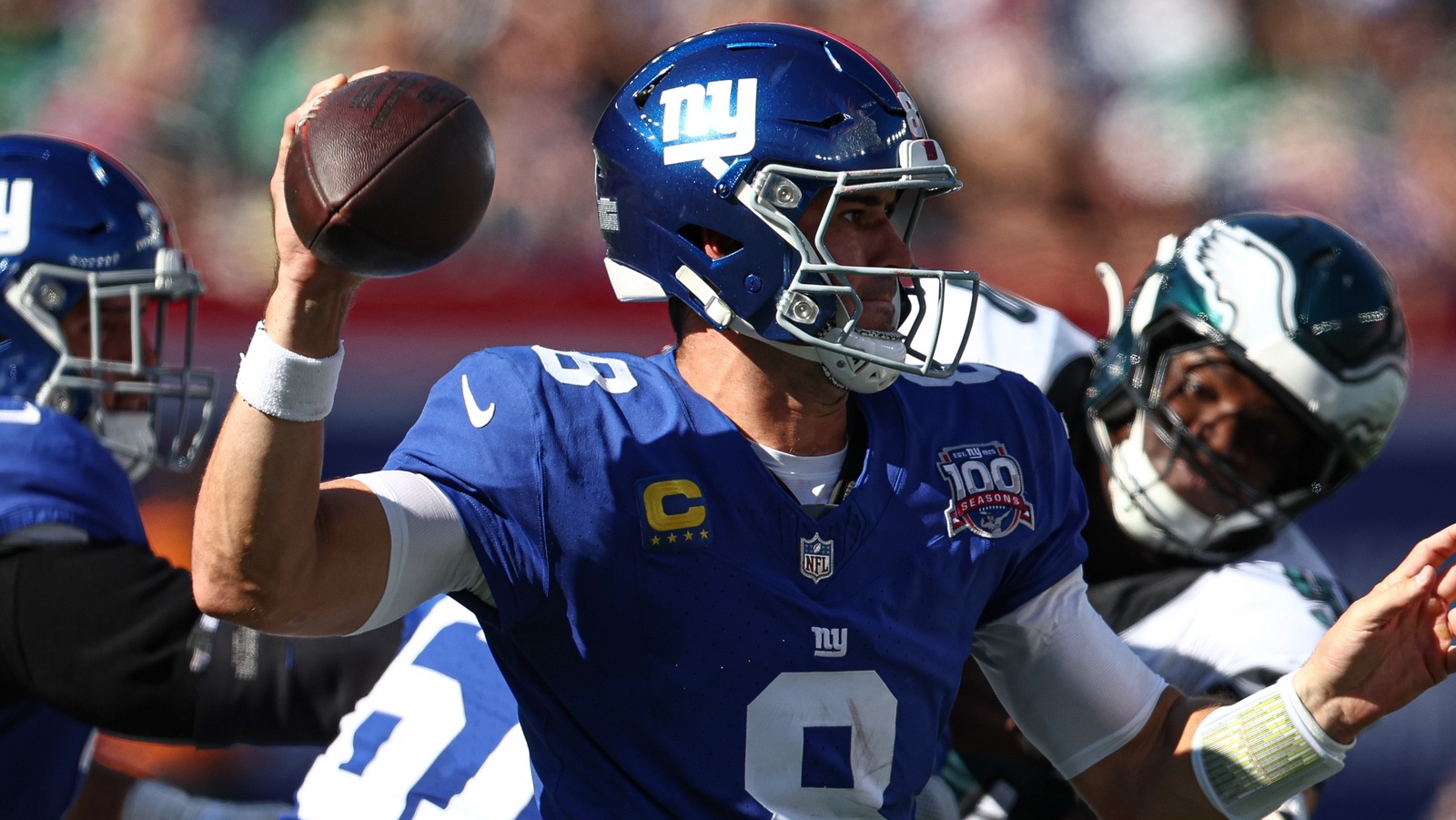 Daniel Jones remains Giants' starting QB despite loss to Eagles, fourth-quarter benchingJones went 14-for-21 with 99 passing yards10/20/2024, 9:17 PMRobert SanchezFreelance Editorial Producer