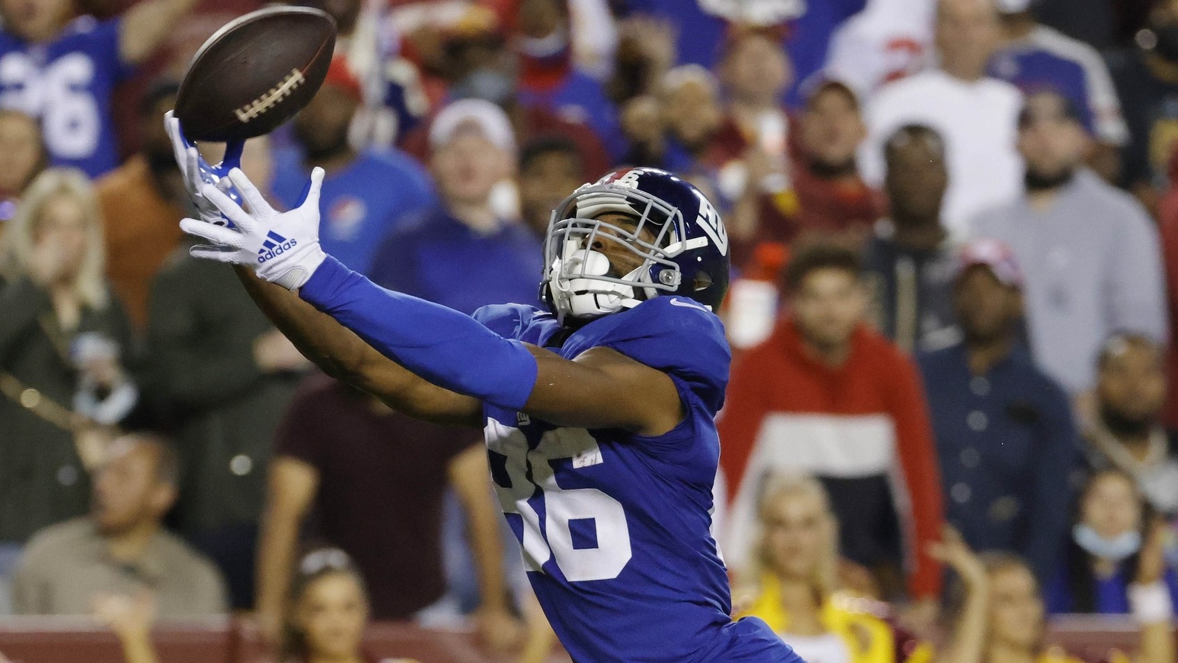 Giants WR Darius Slayton out for third straight game, OT Andrew Thomas and WR Kadarius Toney are activeSlayton joins Saquon Barkley and Kenny Golladay on the inactive list10/17/2021, 4:07 PMColin MartinFreelance Editorial ProducerSep 16, 2021; Landover, Maryland, USA; New York Giants wide receiver Darius Slayton (86) attempts to Catch a touchdown pass against the Washington Football Team in the fourth quarter at FedExField. / Geoff Burke-USA TODAY Sports