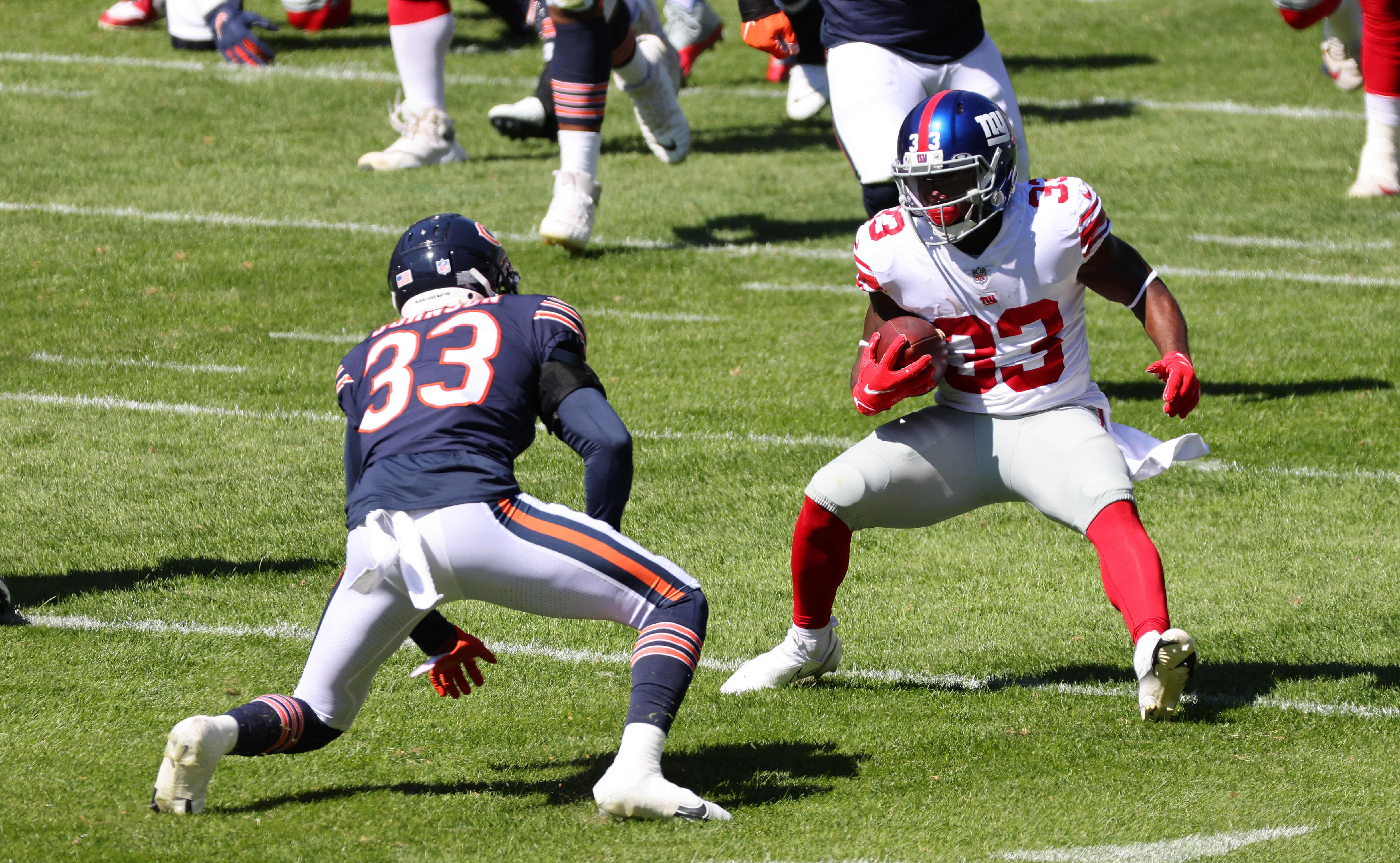 Giants' Dion Lewis ready to step up after Saquon Barkley's injuryWorkload for Lewis increased in Sunday's 17-13 loss to Bears9/21/2020, 2:59 AMGarrett StepienFreelance Editorial ProducerSep 20, 2020; Chicago, Illinois, USA; New York Giants running back Dion Lewis (33) rushes the ball against Chicago Bears cornerback Jaylon Johnson (33) during the second quarter at Soldier Field. Mandatory Credit: Mike Dinovo-USA TODAY Sports / © Mike Dinovo-USA TODAY Sports