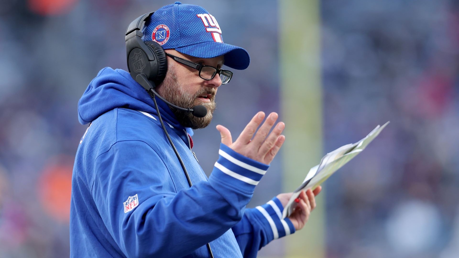 Dec 8, 2024; East Rutherford, New Jersey, USA; New York Giants quarterback Drew Lock (2) and wide receiver Wan'Dale Robinson (17) react as they walk off the field during the fourth quarter against the New Orleans Saints at MetLife Stadium. / Brad Penner-Imagn Images