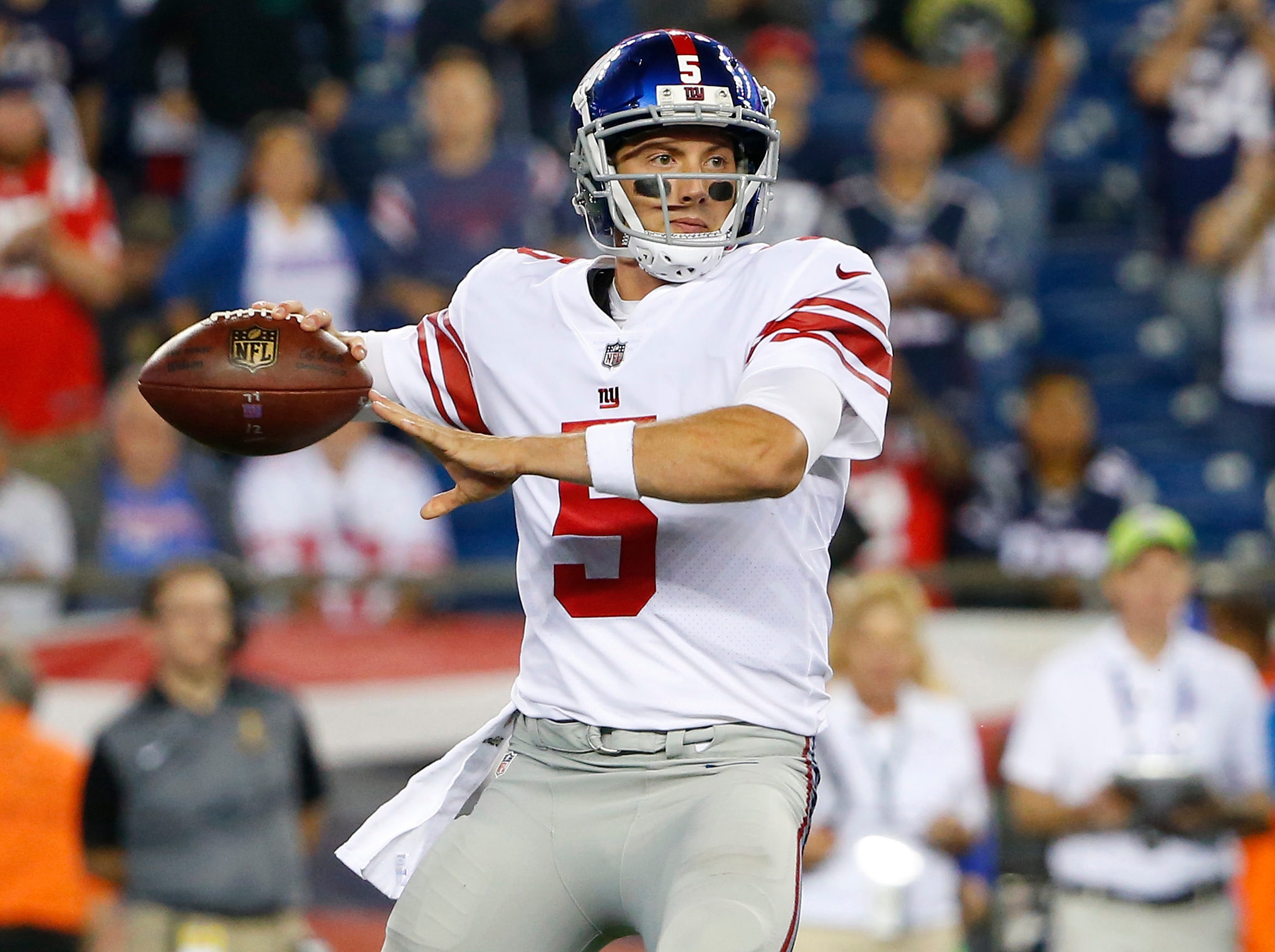 New York Giants quarterback Davis Webb during the second half of an NFL preseason football game against the New England Patriots, Thursday, Aug. 31, 2017, in Foxborough, Mass. (AP Photo/Winslow Townson) / Winslow Townson/AP