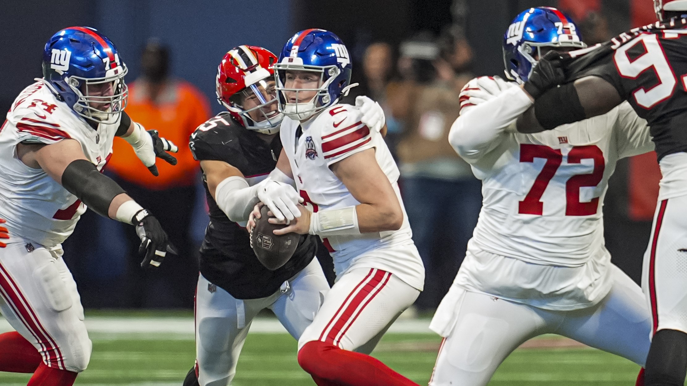 Drew Lock's two pick sixes underline Giants' QB problem in blowout loss at FalconsRegardless of who starts, New York's 2024 QB play is disastrous12/22/2024, 9:04 PMGarrett StepienFreelance Editorial Producer