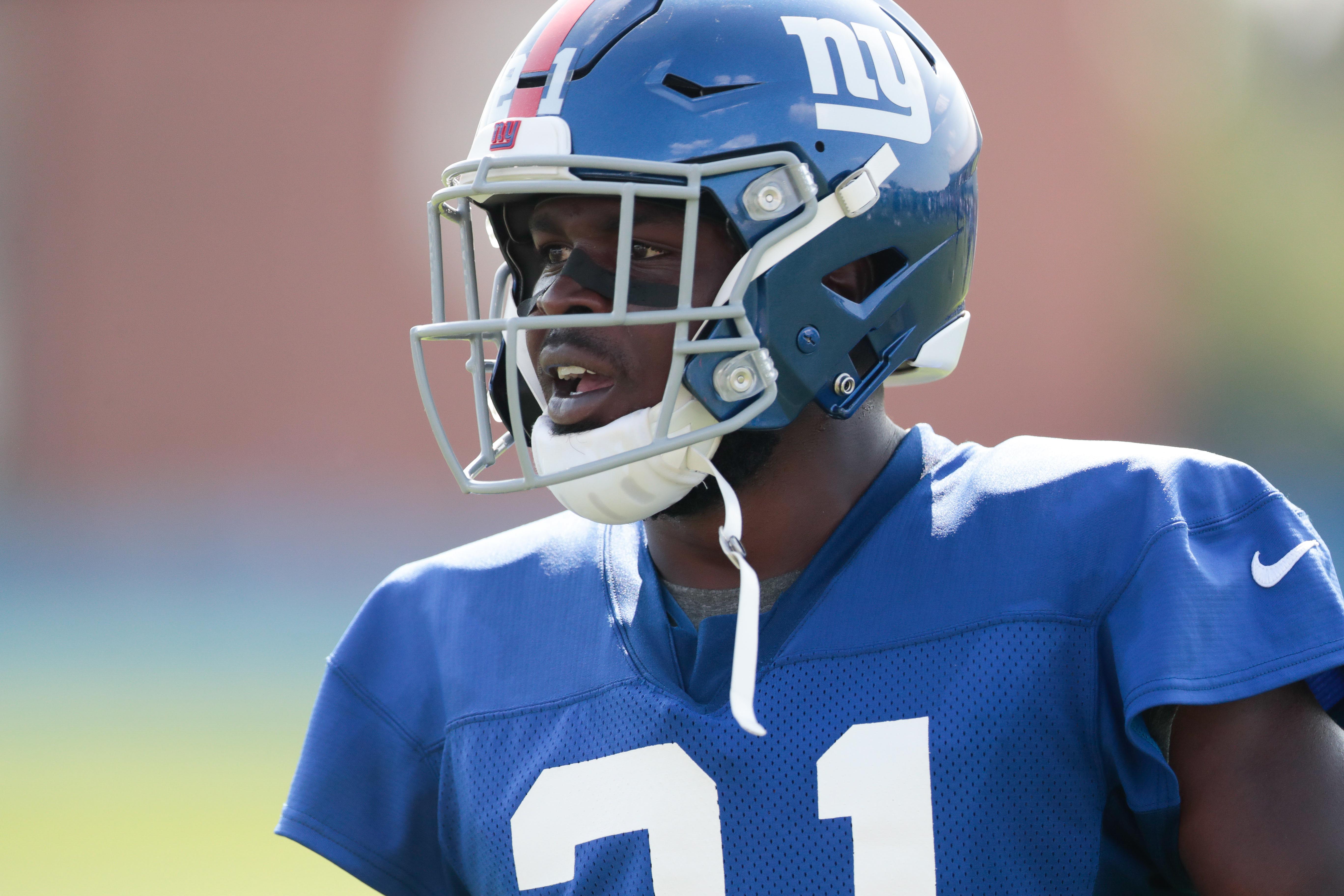 Jul 25, 2019; East Rutherford, NJ, USA; New York Giants free safety Jabrill Peppers (21) during the first day of training camp at Quest Diagnostics Training Center. Mandatory Credit: Vincent Carchietta-USA TODAY Sports / Vincent Carchietta