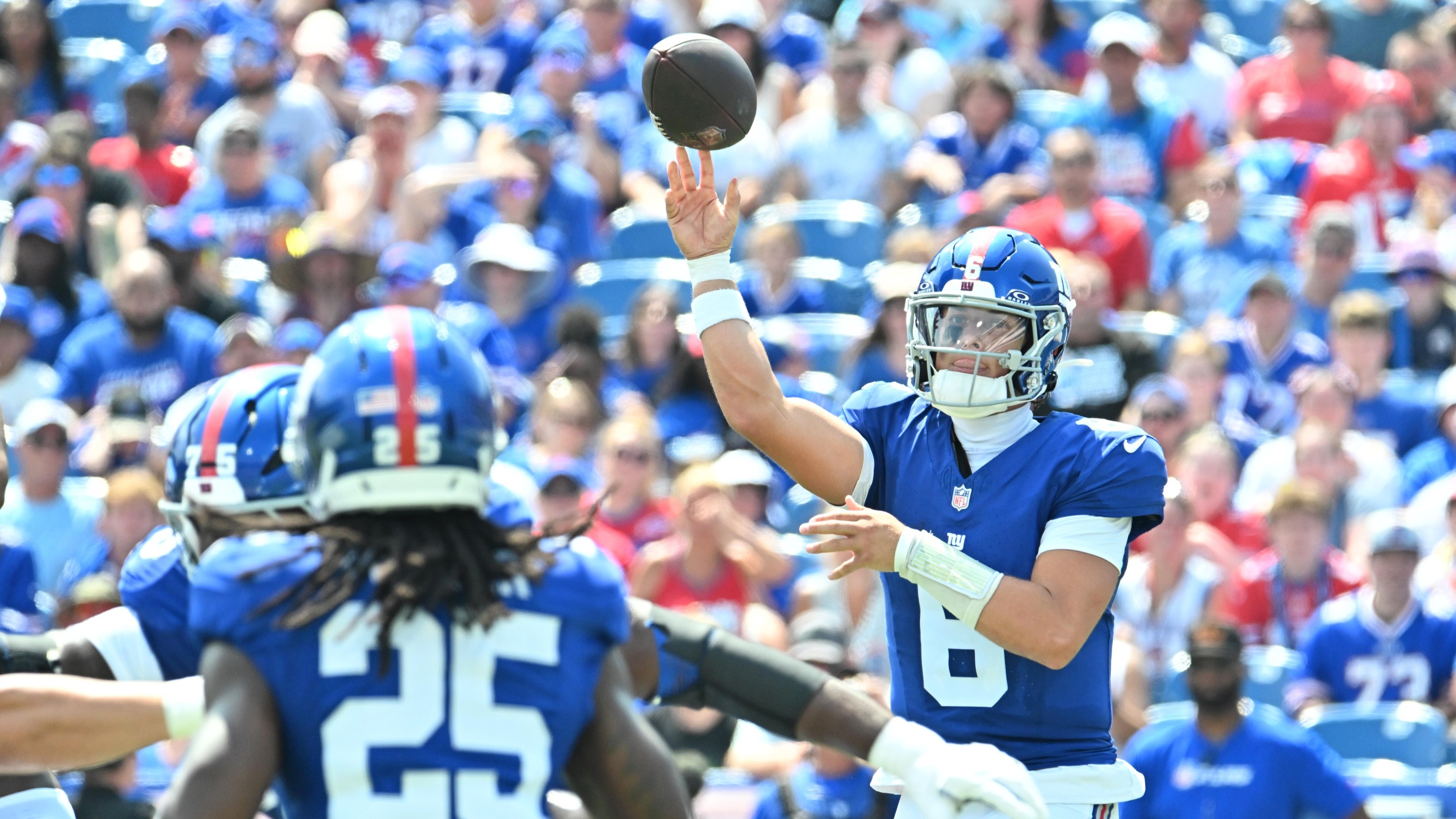 Giants should feel hopeful after Jaxson Dart's impressive NFL debut, even if it's a preseason gameDart finished 12-of-19 for 154 yards, a touchdown and a 106 QBR8/9/2025, 10:30 PMConnor HughesNFL InsiderAug 9, 2025; Orchard Park, New York, USA; New York Giants quarterback Jaxson Dart (6) throws a pass to running back Dante Miller (25) in the second quarter game against the Buffalo Bills at Highmark Stadium. / Mark Konezny-Imagn Images