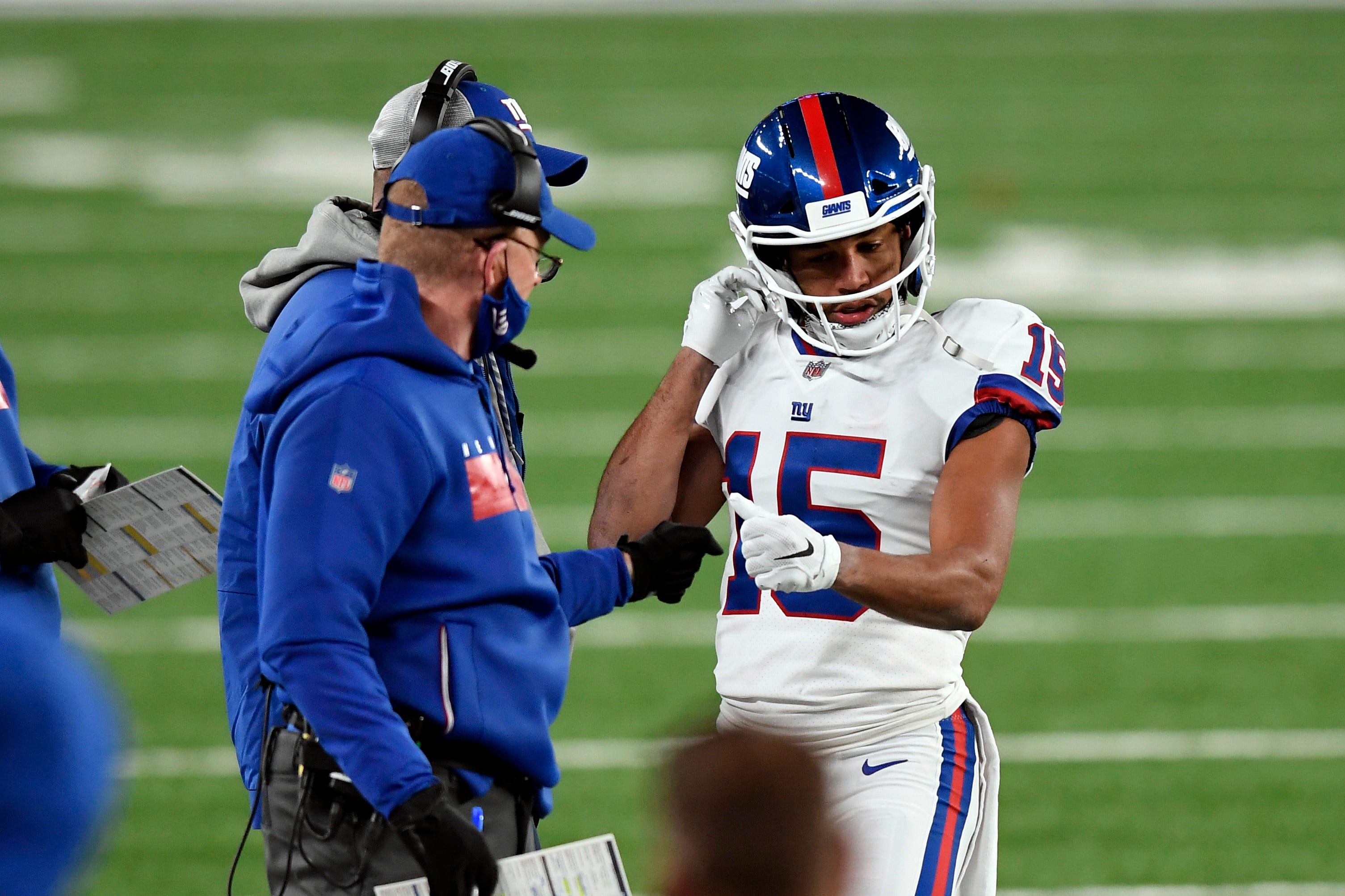 Giants' Joe Judge addresses Golden Tate situation, 'selfish behavior''I'm not going to tolerate, not going to put up with any selfish behavior from anybody -- coach or player'11/4/2020, 8:52 PMGarrett StepienFreelance Editorial ProducerNov 2, 2020; East Rutherford, New Jersey, USA; New York Giants wide receiver Golden Tate (15) celebrates his touchdown with tight end Kaden Smith (82) as Tampa Bay Buccaneers cornerback Sean Murphy-Bunting (23) and safety Mike Edwards (32) talk to back judge Greg Meyer (78) during the second half at MetLife Stadium. Mandatory Credit: Vincent Carchietta-USA TODAY Sports / © Vincent Carchietta-USA TODAY Sports
