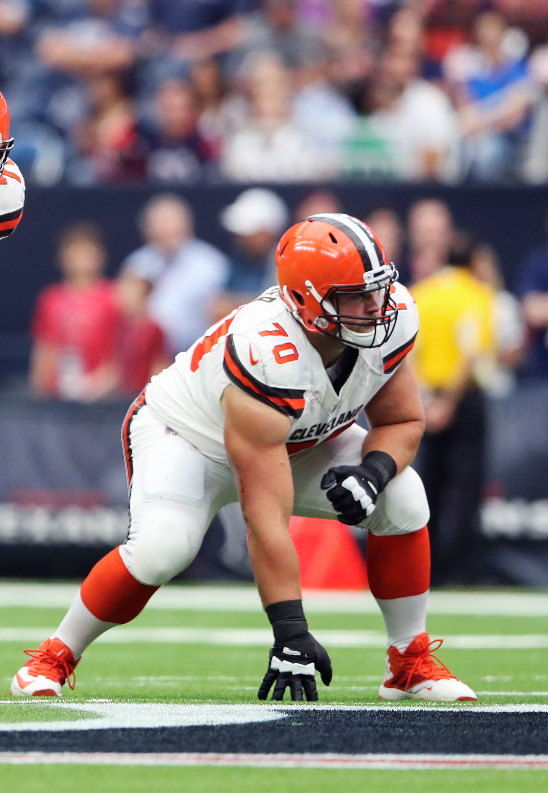 Oct 15, 2017; Houston, TX, USA; Cleveland Browns offensive guard Kevin Zeitler (70) during the game against the Houston Texans at NRG Stadium. Mandatory Credit: Kevin Jairaj-USA TODAY Sports / Kevin Jairaj