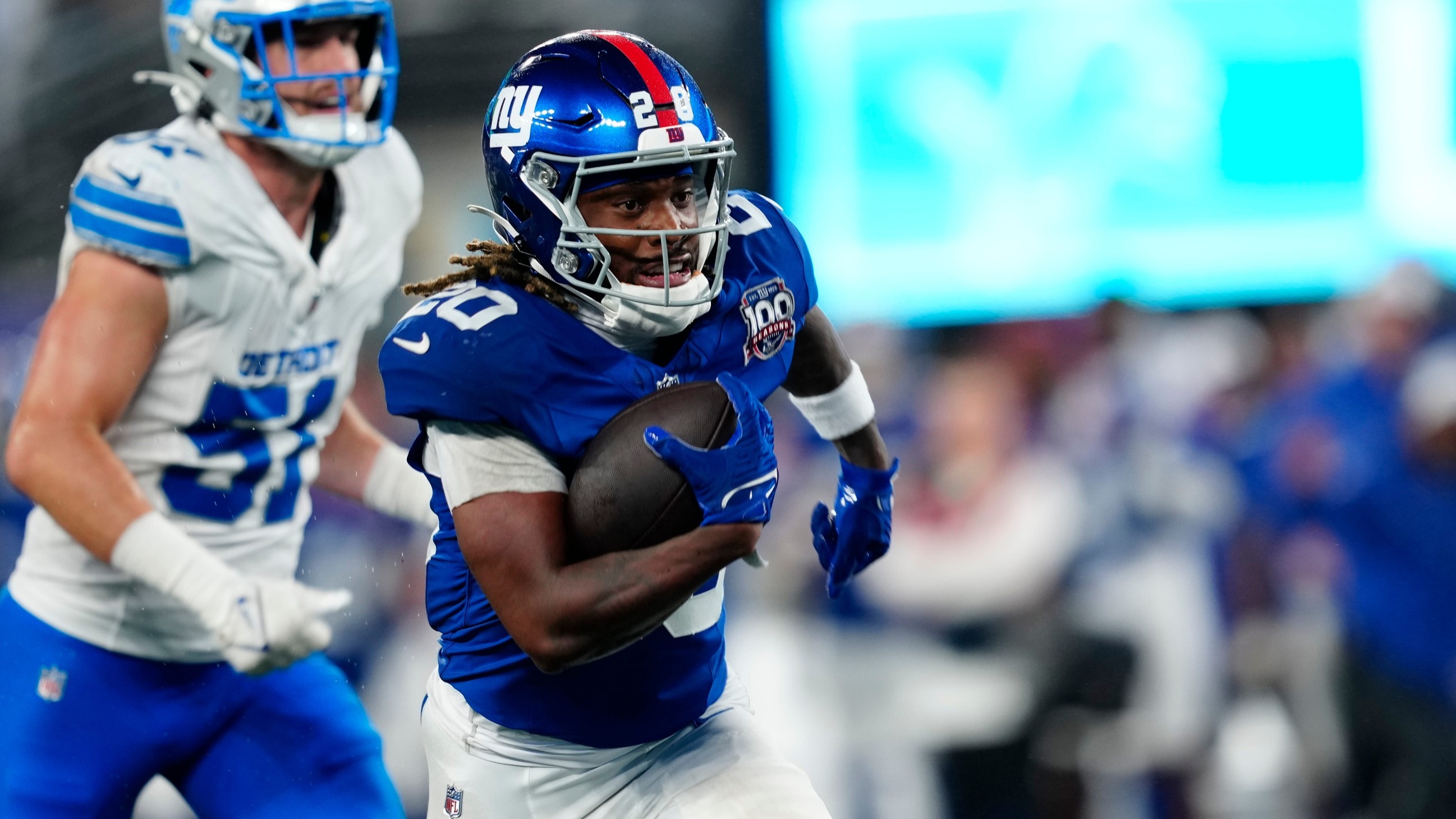 Eric Gray's big first half propels Giants to 14-3 win over Lions in preseason openerFirst-round pick Malik Nabers wasn't targeted in debut8/9/2024, 2:24 AMLucas HutchersonNFL freelance writerNew York Giants running back Eric Gray (20) runs towards the end zone for the first touchdown of the game / Kevin R. Wexler / NorthJersey.com / USA TODAY NETWORK