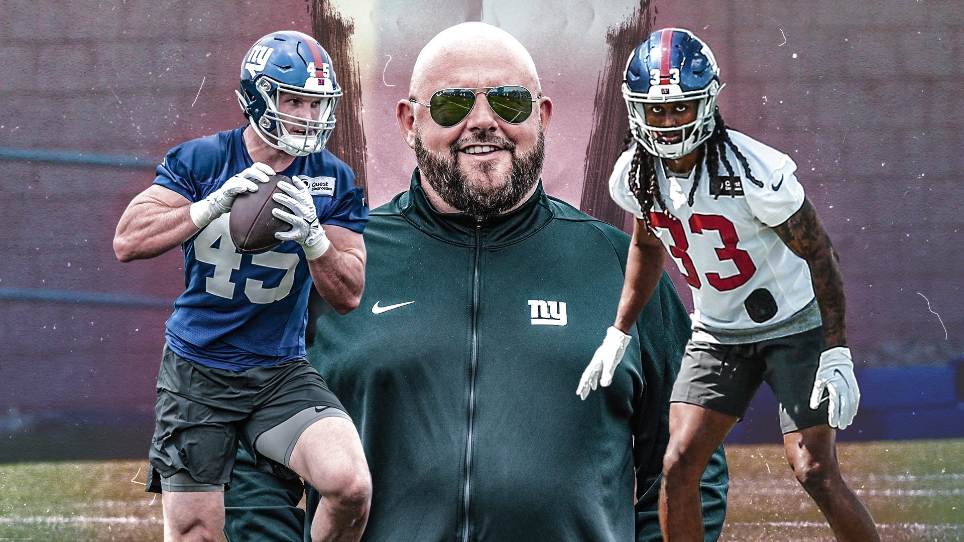 Wink Martindale in blue Giants hat during OTAs / Teddy Aviles - SNY