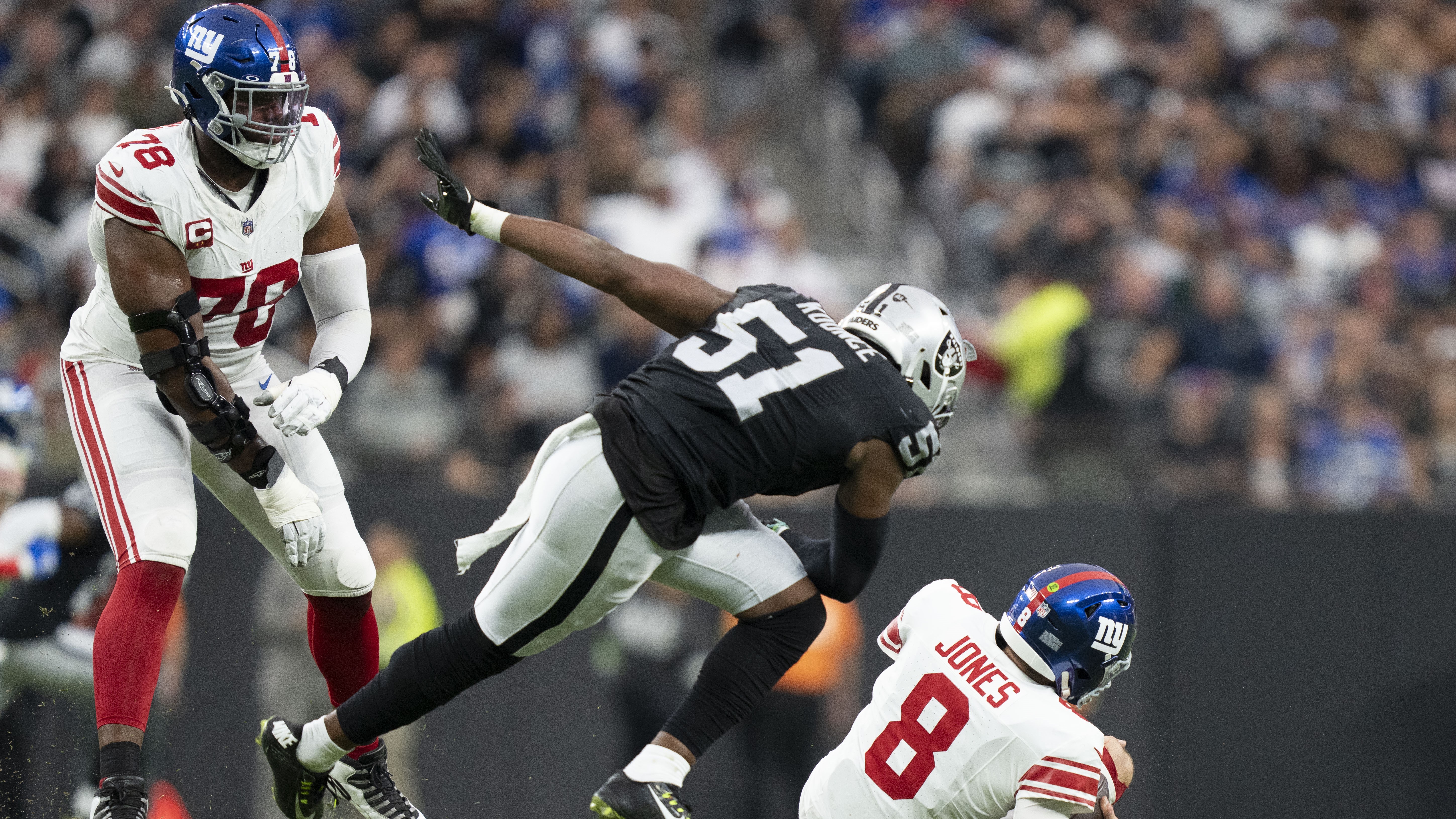 Giants takeaways from Sunday's 30-6 loss at Raiders, including the impact of Daniel Jones' knee injuryNew York fell behind early against a fired up Las Vegas team11/6/2023, 12:39 AMLucas HutchersonNFL freelance writer