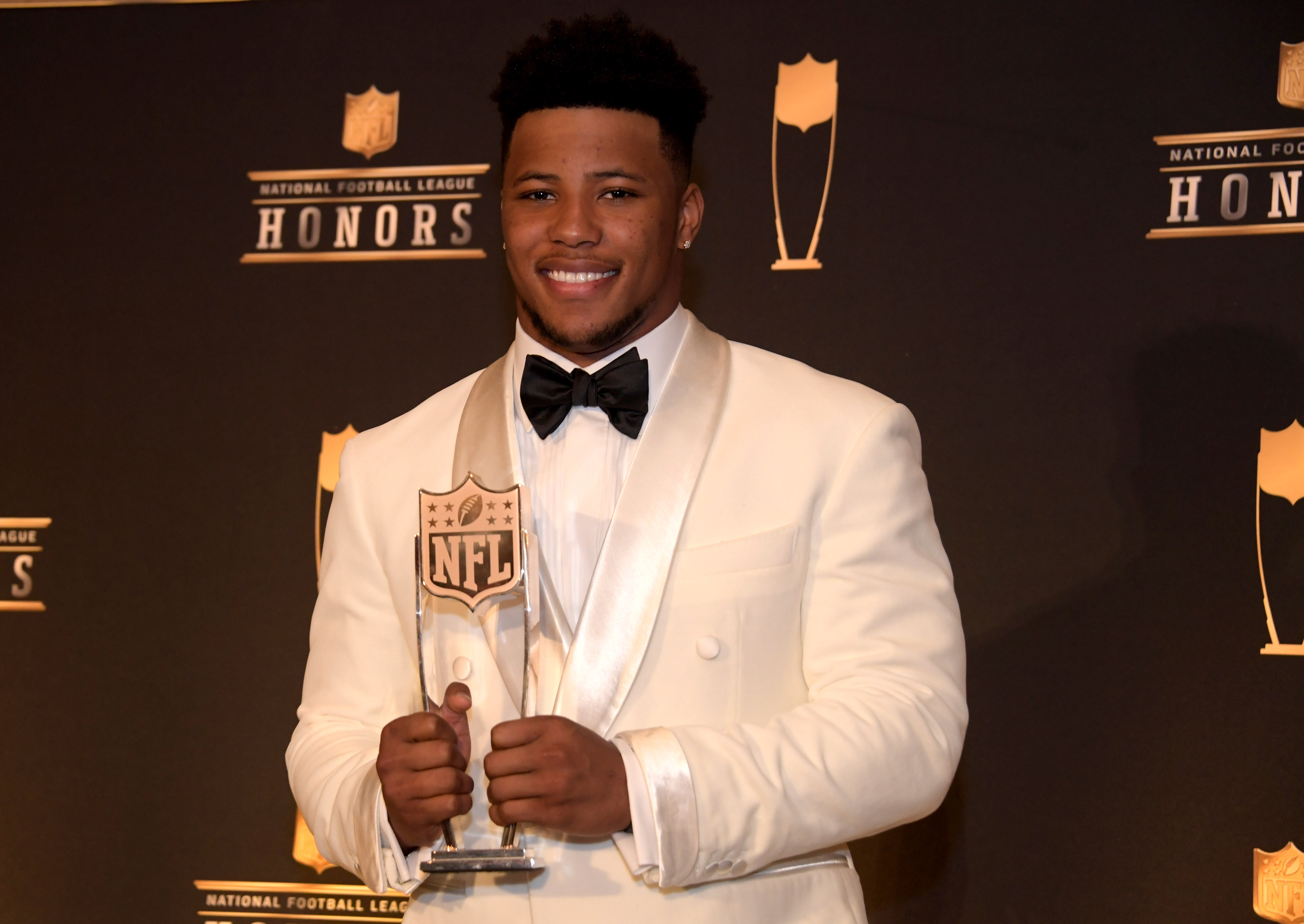 Offensive Rookie of the Year winner Saquon Barkley of the New York Giants during media availabilities for the NFL Honors show at the Fox Theatre. / Kirby Lee/USA TODAY Sports