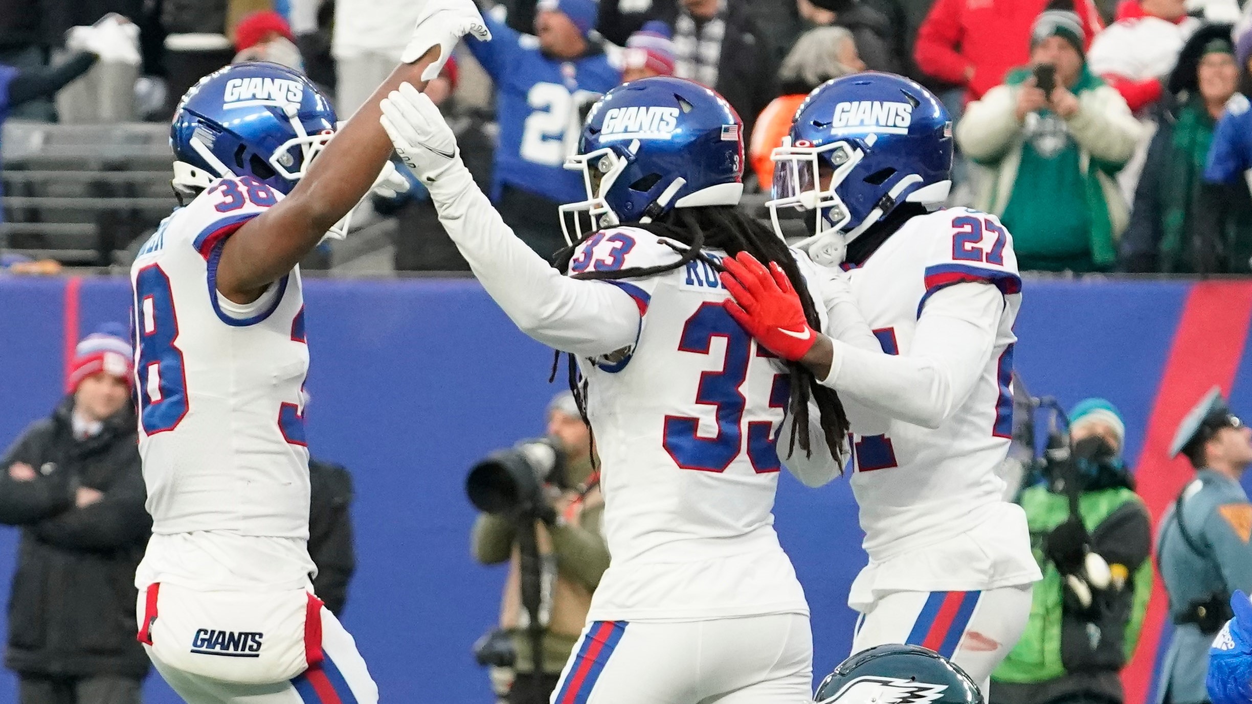 Giants takeaways in 13-7 win over Eagles, including a stout defensive performanceJalen Hurts threw three interceptions, was 14-for-3111/28/2021, 9:30 PMRalph VacchianoNFL Insider