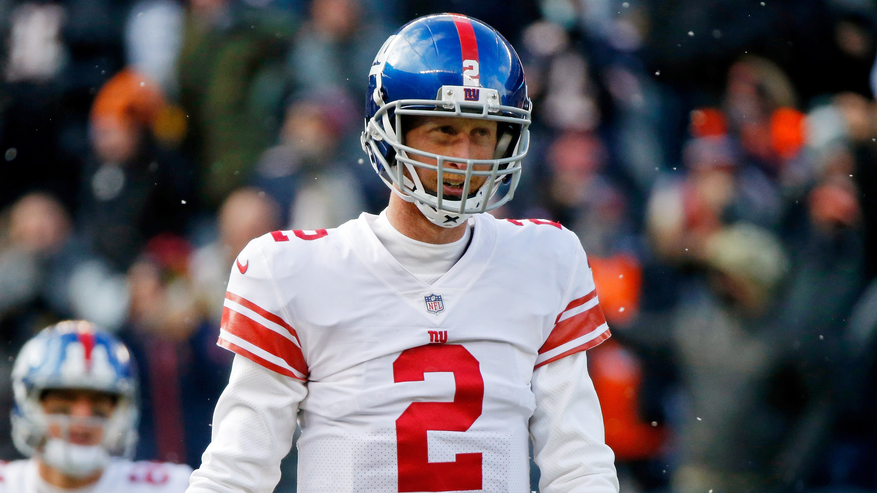 New York Giants quarterback Mike Glennon (2) reacts after turning over the ball against the Chicago Bears on a fumble during the first half at Soldier Field. / Jon Durr- USA TODAY Sports