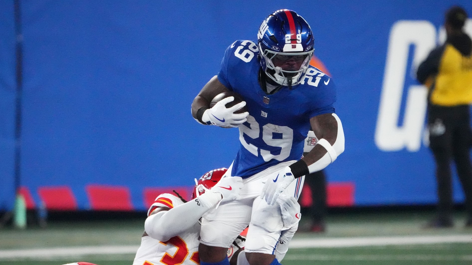 Giants running back Tyrone Tracy Jr. to miss time with dislocated shoulder: reportTracy had 36 yards from scrimmage before leaving Sunday night's loss to Kansas City9/22/2025, 5:13 PMAlex SmithEditorial Producer