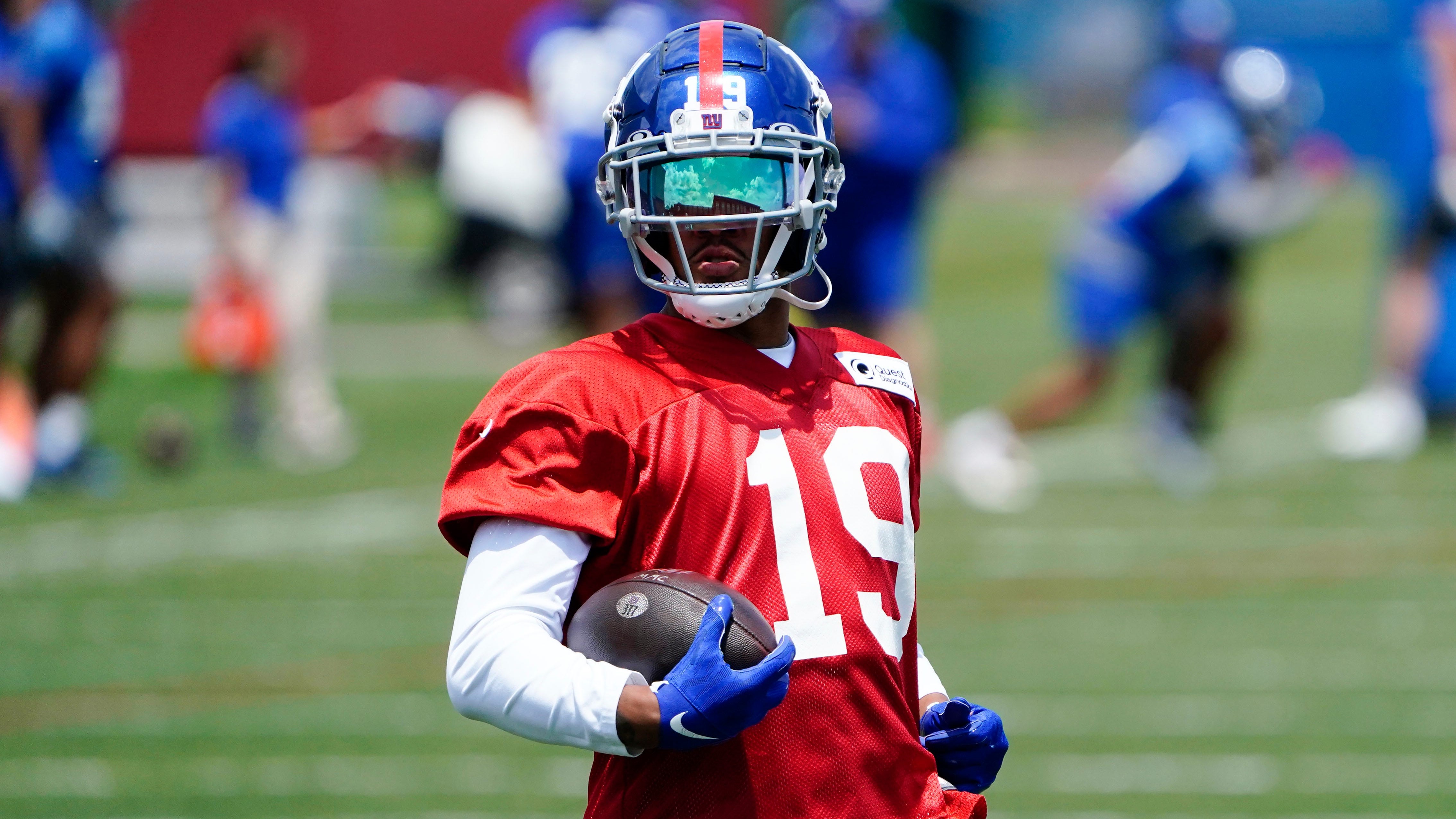 Sep 16, 2021; Landover, Maryland, USA; New York Giants wide receiver Kenny Golladay (19) attempts to make a catch as Washington Football Team cornerback Kendall Fuller (29) defends in the third quarter at FedExField. Mandatory Credit: Geoff Burke-USA TODAY Sports / Geoff Burke-USA TODAY Sports