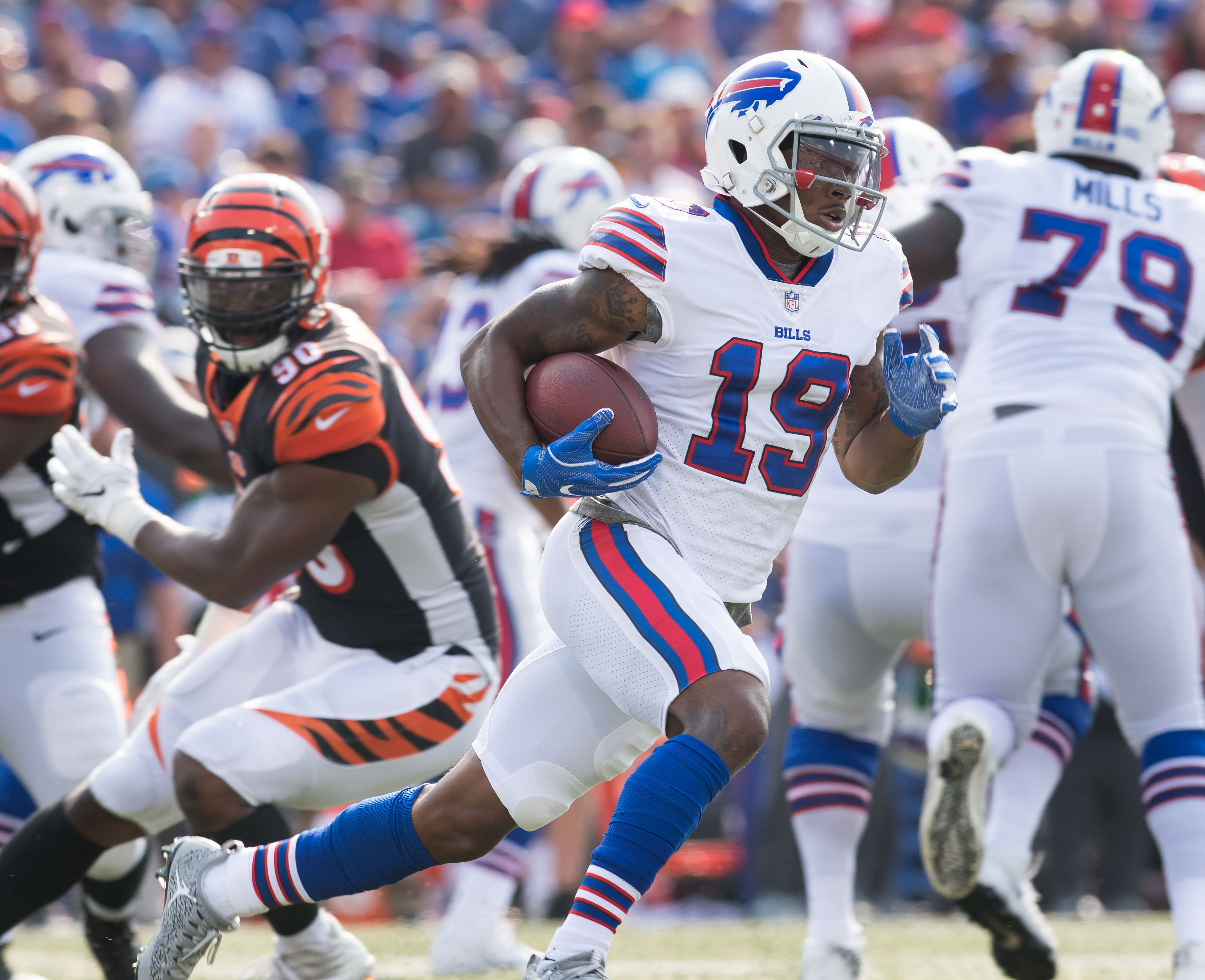 Aug 26, 2018; Orchard Park, NY, USA; Buffalo Bills wide receiver Corey Coleman (19) against the Cincinnati Bengals during the first quarter at New Era Field. Mandatory Credit: Mark Konezny-USA TODAY Sports / Mark Konezny