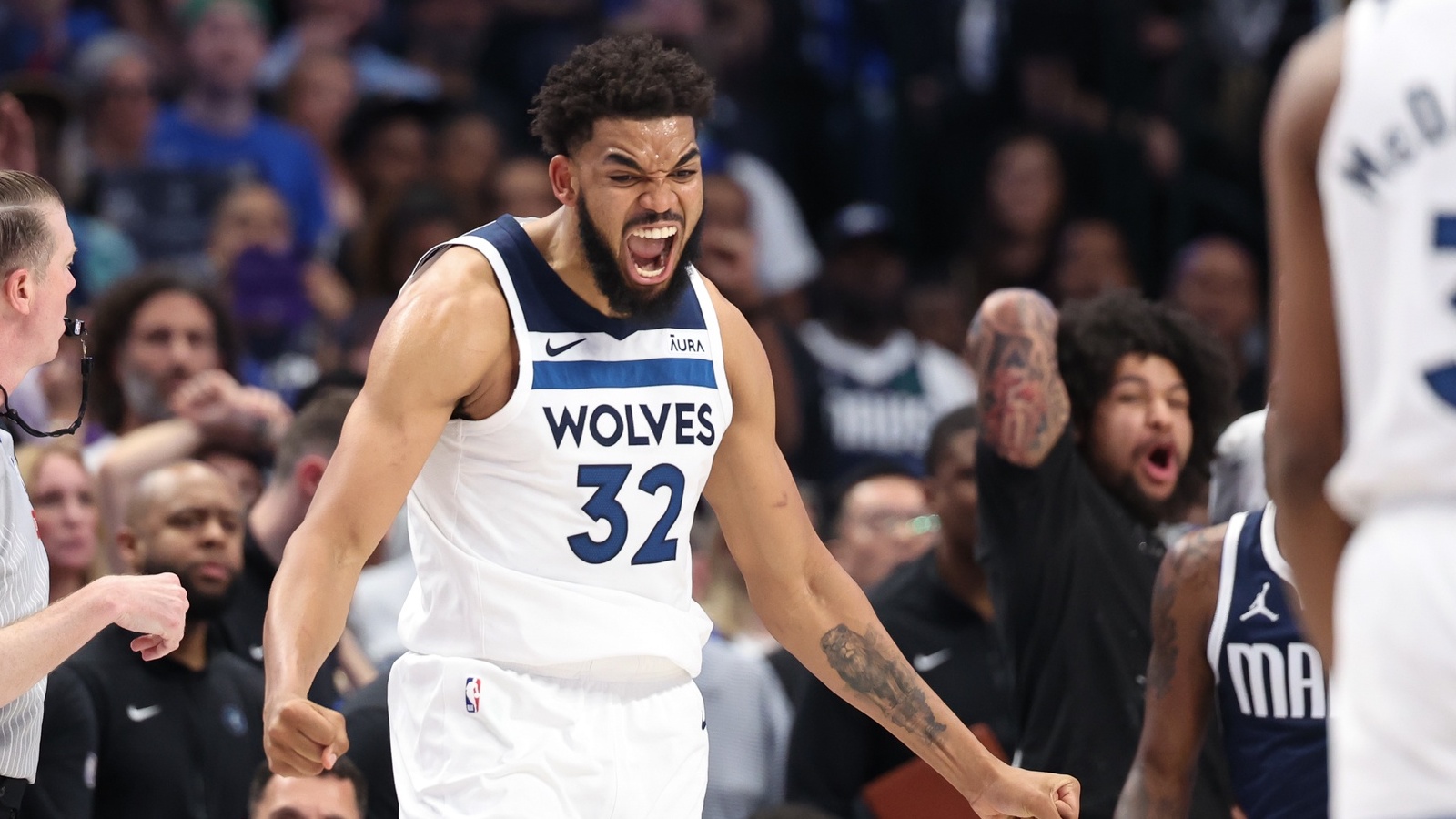 Minnesota Timberwolves center Karl-Anthony Towns (32) looks to drive past New York Knicks forward Julius Randle (30) in the first quarter at Madison Square Garden. / Mandatory Credit: Wendell Cruz-Imagn Images