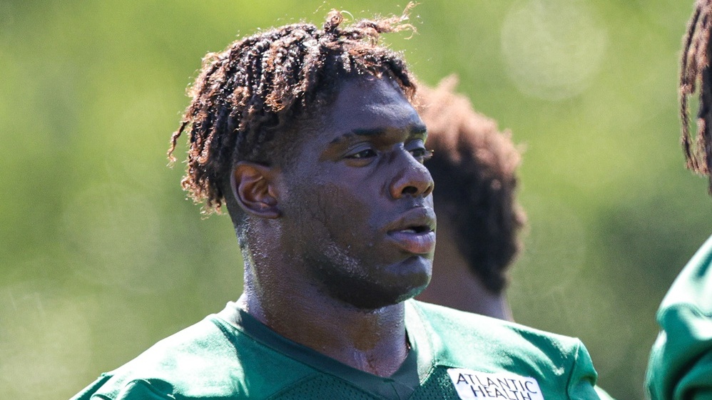 Jul 31, 2021; Florham Park, NJ, USA; New York Jets defensive end Carl Lawson (58) looks on during training camp at Atlantic Health Jets Training Center. / Vincent Carchietta-USA TODAY Sports