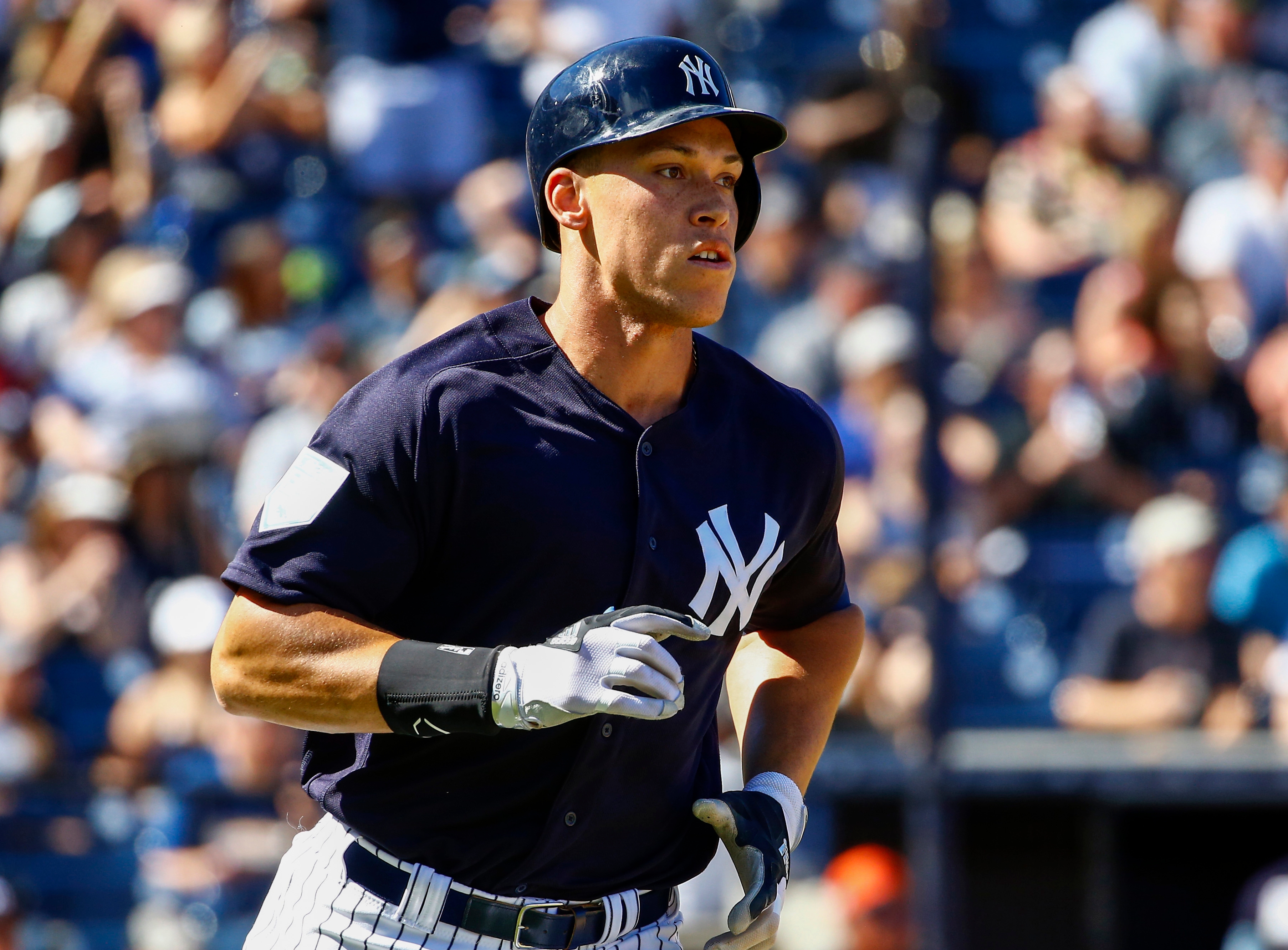 Mar 3, 2019; Tampa, FL, USA; New York Yankees right fielder Aaron Judge (99) runs the bases after hitting a two run home run during the fifth inning against the Detroit Tigers at George M. Steinbrenner Field. Mandatory Credit: Butch Dill-USA TODAY Sports / Butch Dill