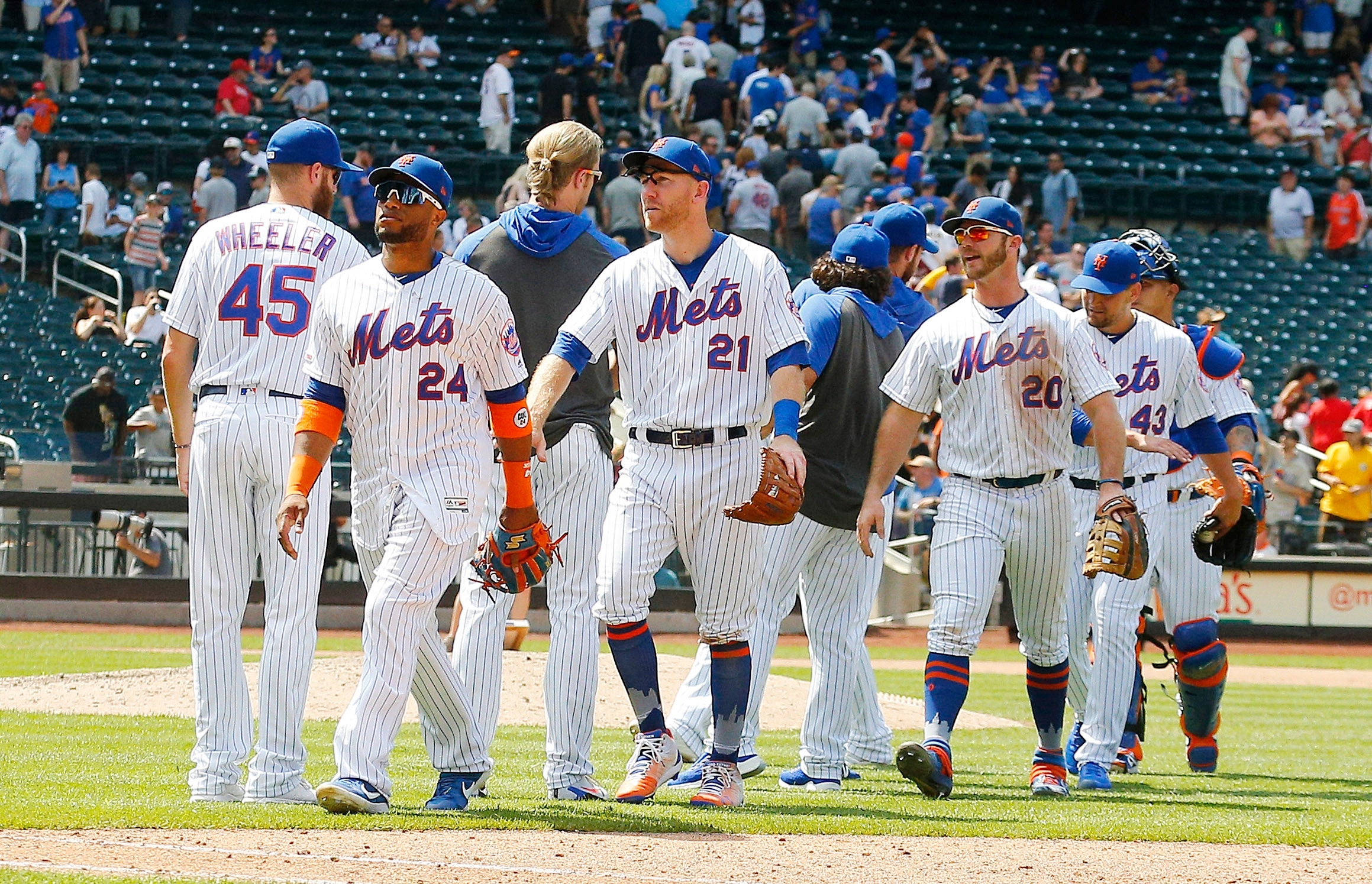 Jul 25, 2019; New York City, NY, USA; The New York Mets react after defeating the San Diego Padres at Citi Field. Mandatory Credit: Andy Marlin-USA TODAY Sports / Andy Marlin