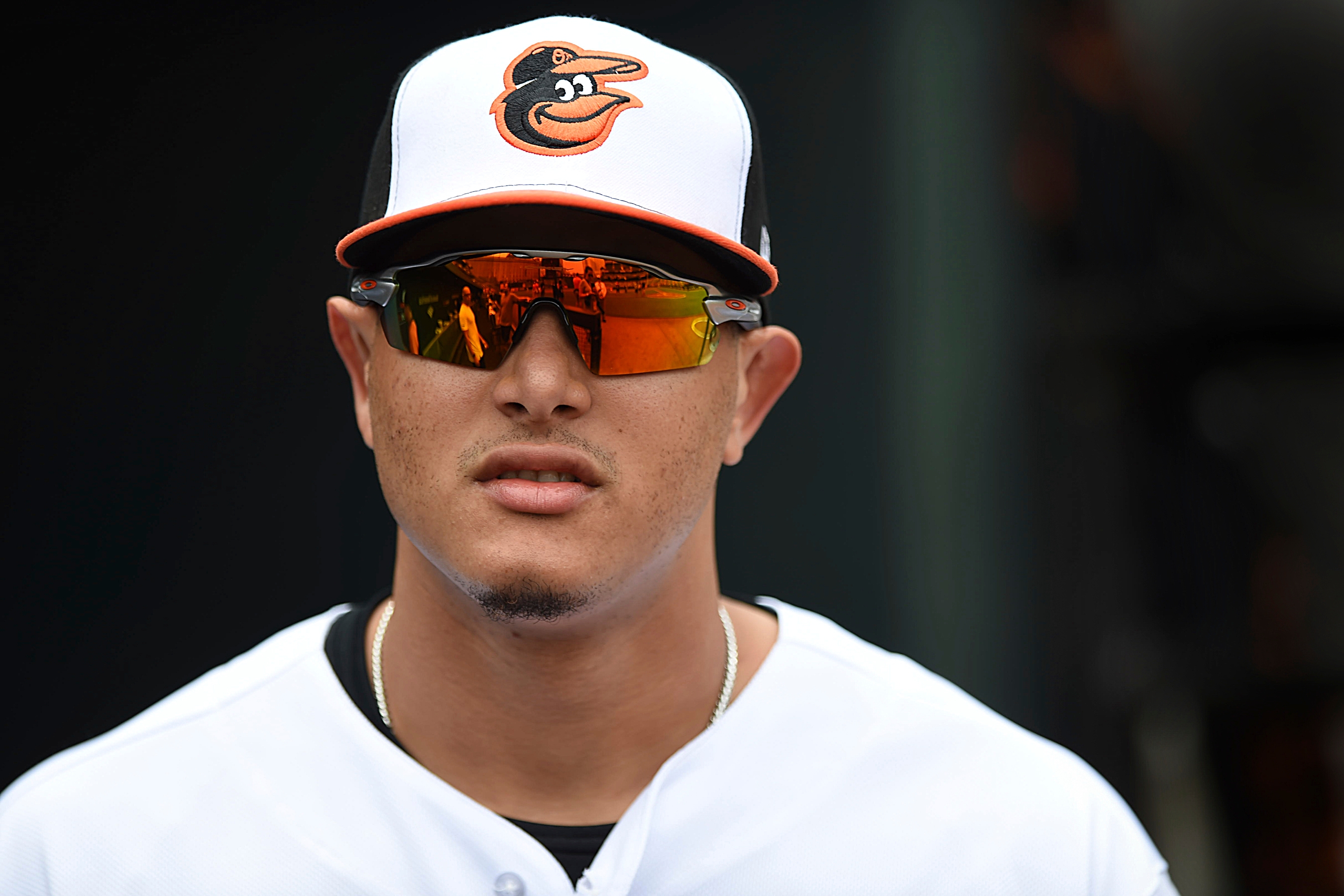 Baltimore Orioles' Manny Machado, waits in the dugout before being presented with his All-Star jersey before playing the Texas Rangers in a baseball game, Sunday, July 15, 2018, in Baltimore. (AP Photo/Gail Burton) / Gail Burton/AP