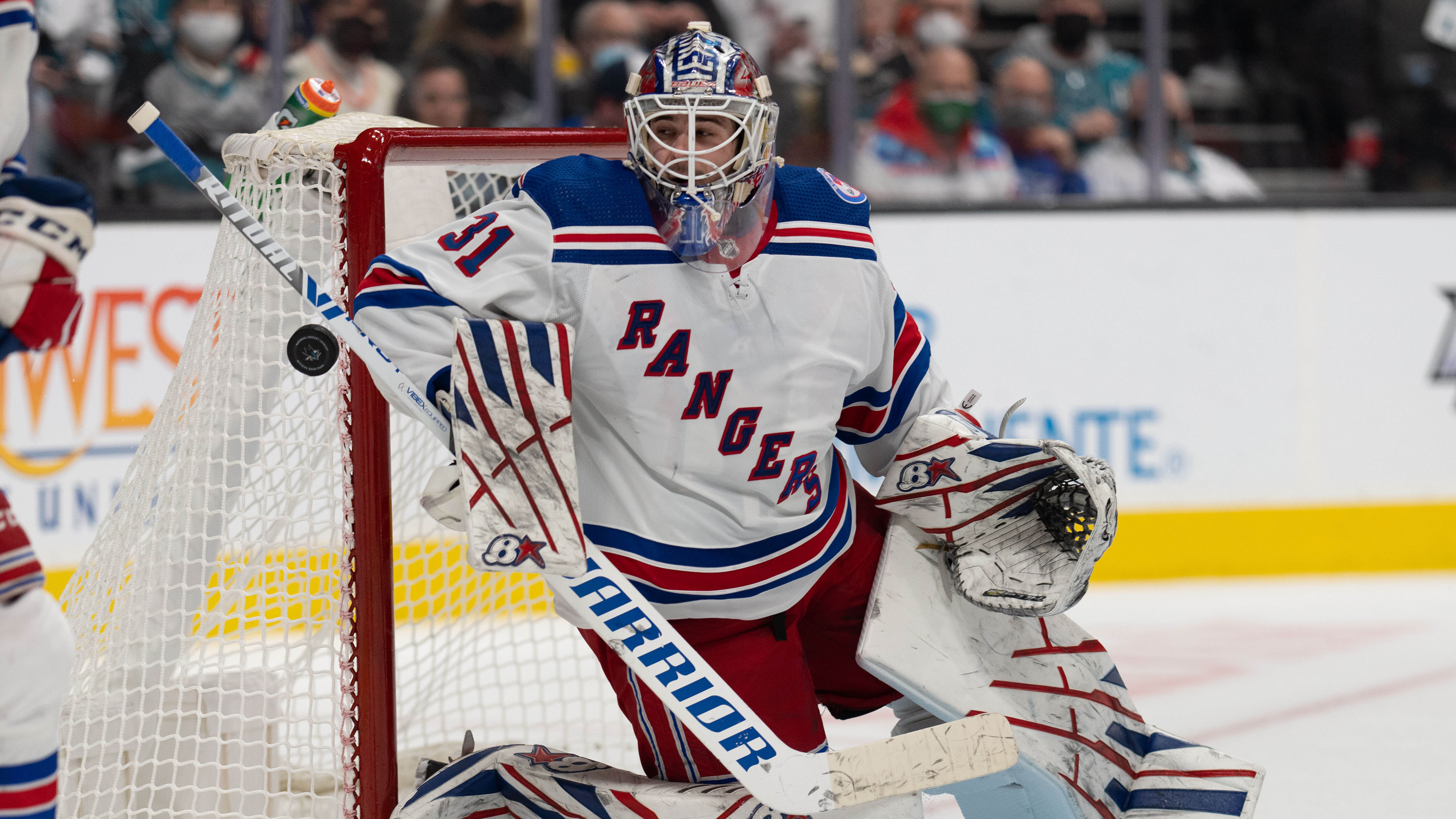 Igor Shesterkin blanks Sharks in return in Rangers' 3-0 win