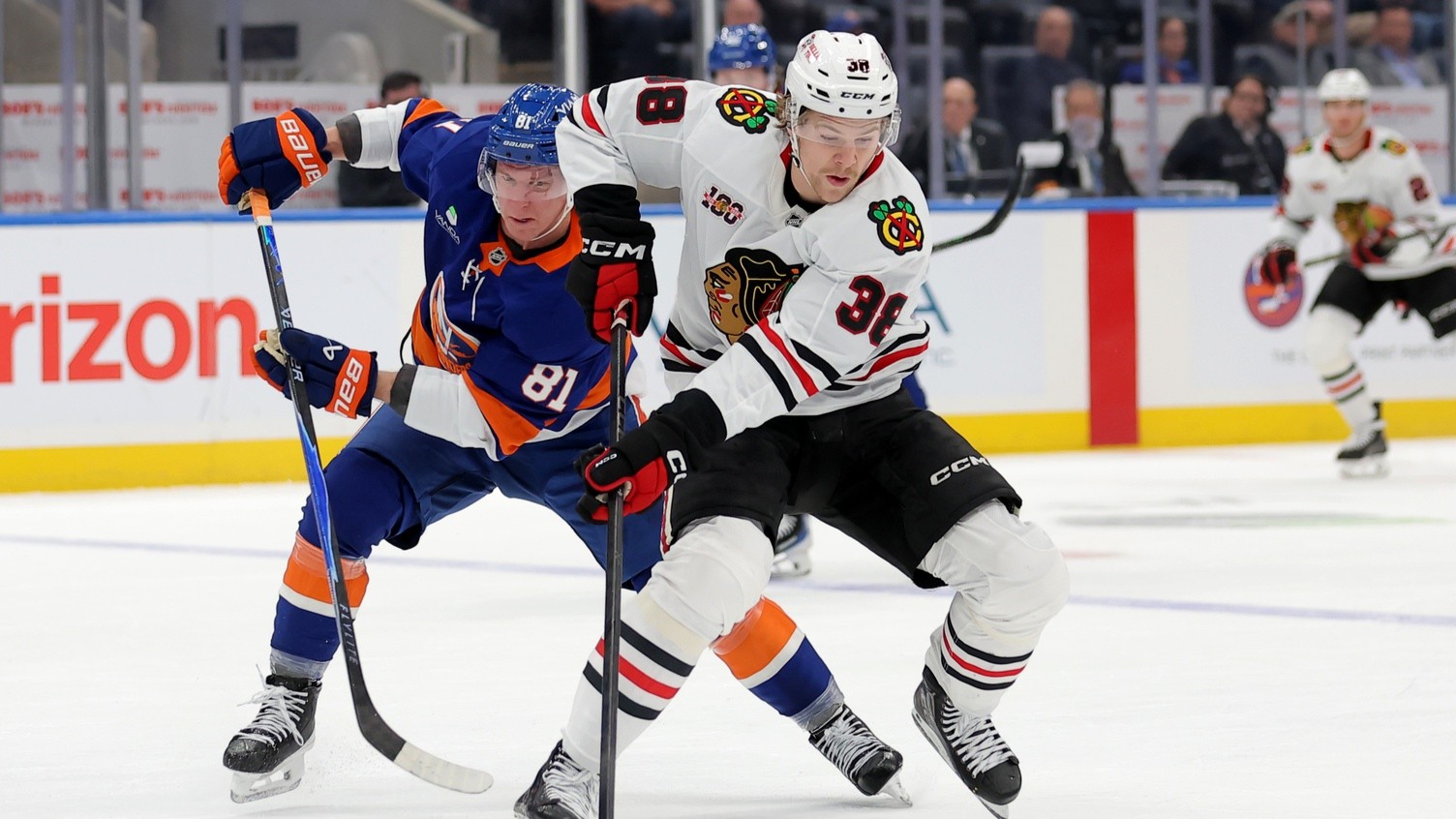 Islanders unable to erase poor first period in 4-3 loss to BlackhawksIsles were down 3-1 after the first period3/25/2026, 1:57 AMAssociated PressMar 24, 2026; Elmont, New York, USA; Chicago Blackhawks defenseman Ethan del Mastro (38) plays the puck against New York Islanders left wing Ondrej Palat (81) during the first period at UBS Arena. / Brad Penner-Imagn Images