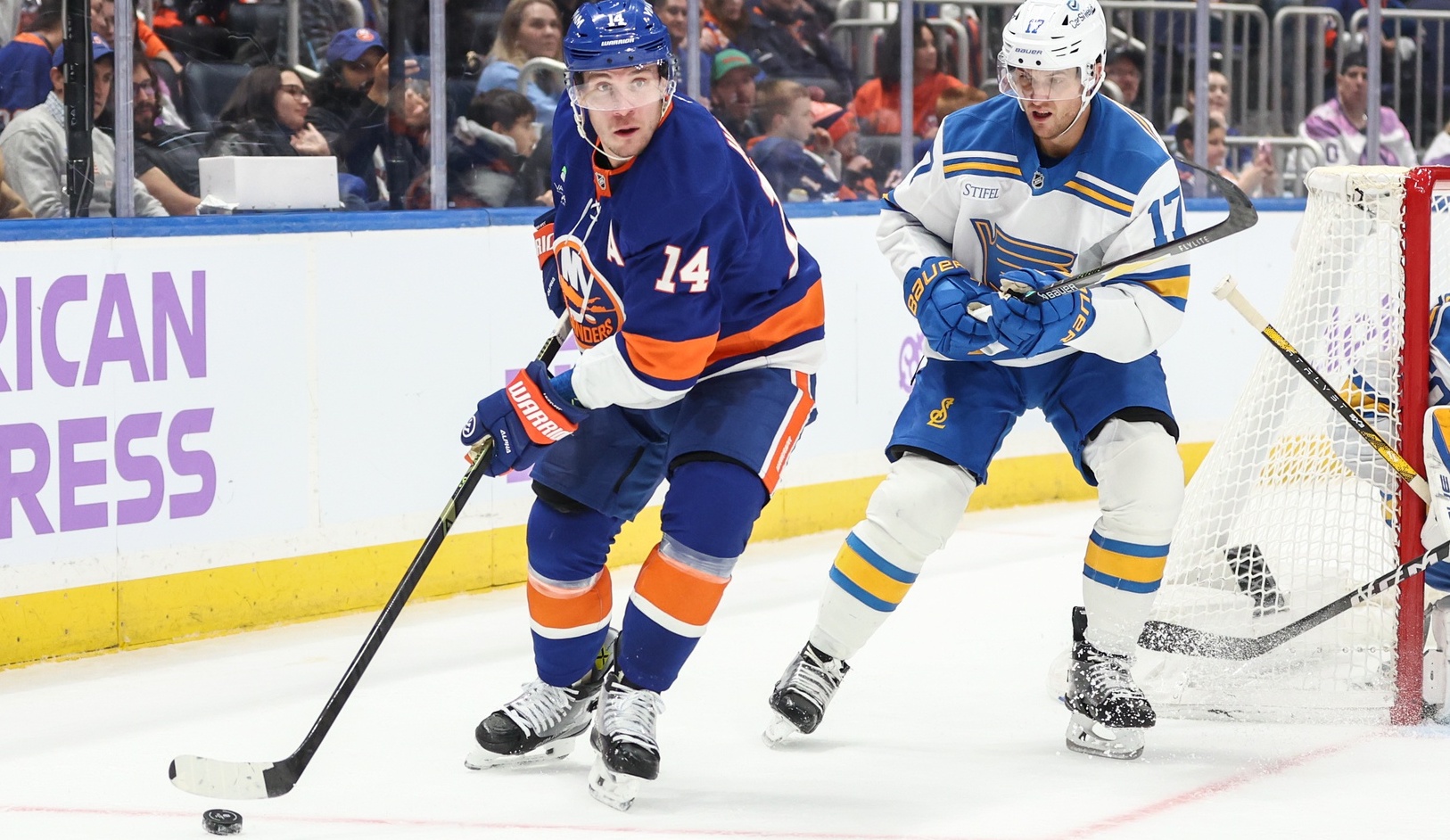 Islanders return home, drop disappointing game to struggling Blues, 2-1St. Louis had lost four in a row but did just enough against New York11/22/2025, 11:41 PMAssociated PressNew York Islanders center Bo Horvat (14) and St. Louis Blues defenseman Cam Fowler (17) battle for control of the puck in the second period at UBS Arena. / Wendell Cruz-Imagn Images