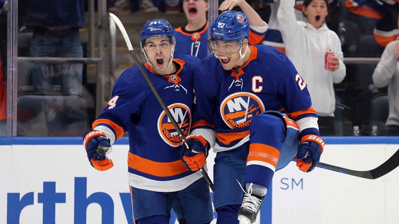 Islanders storm out to early lead behind Kyle Palmieri's hat trick, beat Bruins, 5-1New York has won three straight3/3/2024, 3:38 AMAssociated PressNew York Islanders left wing Anders Lee (27) celebrates his goal against the Boston Bruins with center Jean-Gabriel Pageau (44) during the second period at UBS Arena. / Brad Penner-USA TODAY Sports
