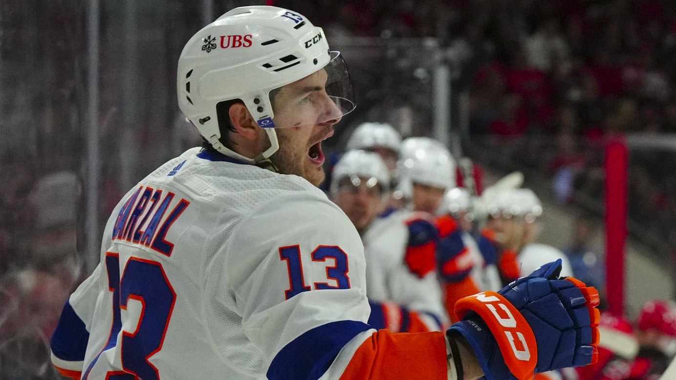 Mathew Barzal's OT goal propels Islanders to 5-4 win over HurricanesSemyon Varlamov made 38 saves in the win12/1/2023, 3:49 AMAssociated PressNew York Islanders center Mathew Barzal (13) celebrates his goal against the Carolina Hurricanes during the second period in game five of the first round of the 2023 Stanley Cup Playoffs at PNC Arena / James Guillory - USA TODAY Sports