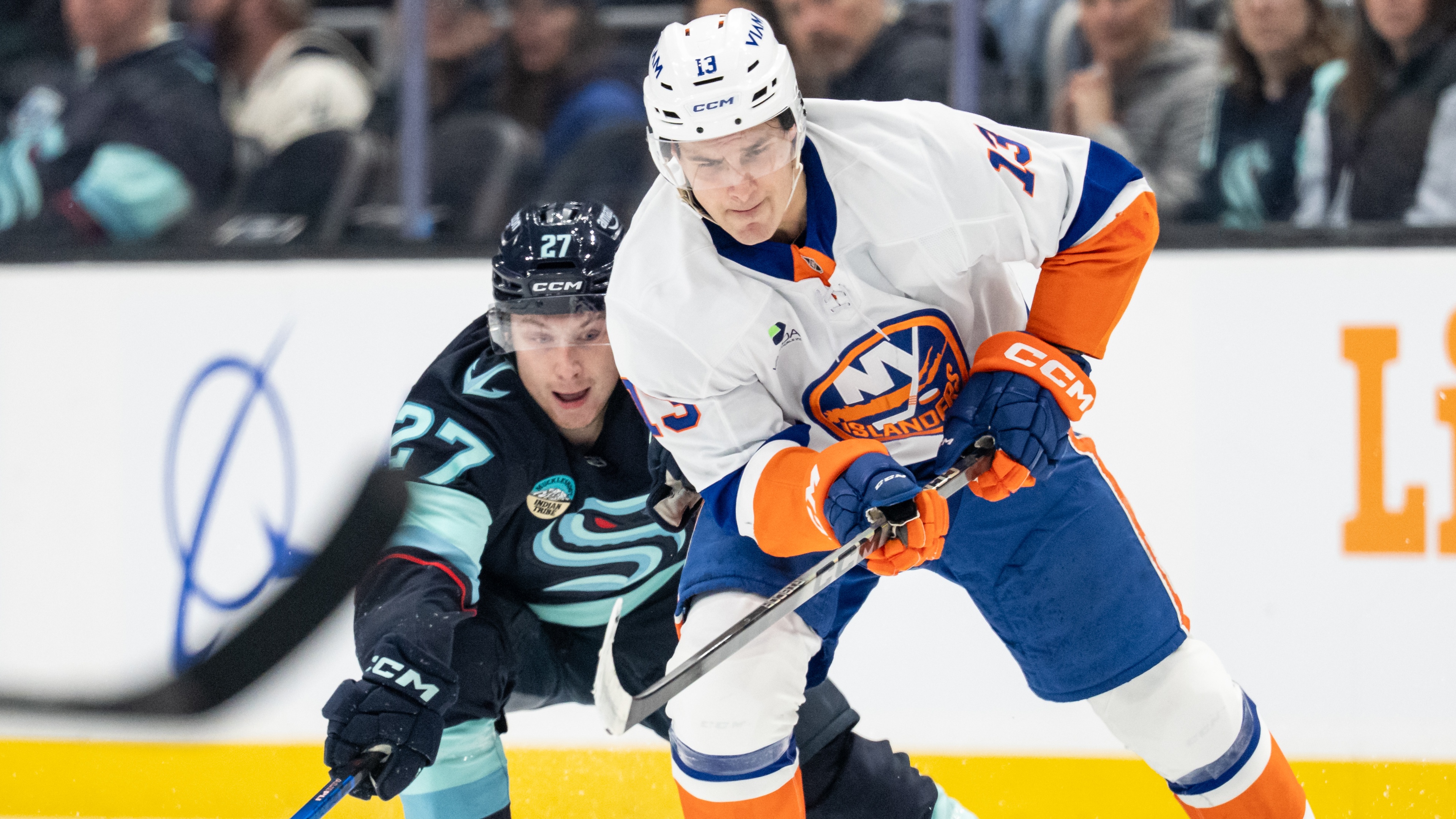 Islanders finish long road trip with 4-1 loss to KrakenIslanders went 3-3-1 on seven-game road trip1/22/2026, 5:55 AMAssociated PressNew York Islanders forward Mathew Barzal (13) skates against Seattle Kraken forward Berkly Catton (27) during the first period at Climate Pledge Arena / Stephen Brashear - Imagn Images