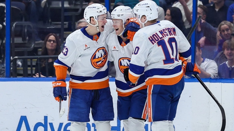 Islanders pull out seventh straight win in 3-2 OT thriller against LightningAfter Nikita Kucherov's game-tying goal late in third period, Tony DeAngelo scored game-winner2/2/2025, 3:24 AMAssociated PressNew York Islanders defenseman Adam Boqvist (34) celebrates after scoring a goal against the Tampa Bay Lightning in the second period at Amalie Arena. / Nathan Ray Seebeck-Imagn Images