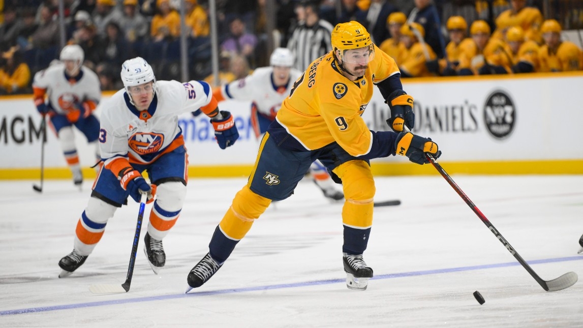 Islanders let late two-goal lead slip, fall 7-6 to Predators in overtimeIsles allow two goals in final 2:07 of third period4/9/2025, 3:30 AMAssociated PressNashville Predators left wing Filip Forsberg (9) skates with the puck against the New York Islanders during the third period at Bridgestone Arena. / Steve Roberts-Imagn Images