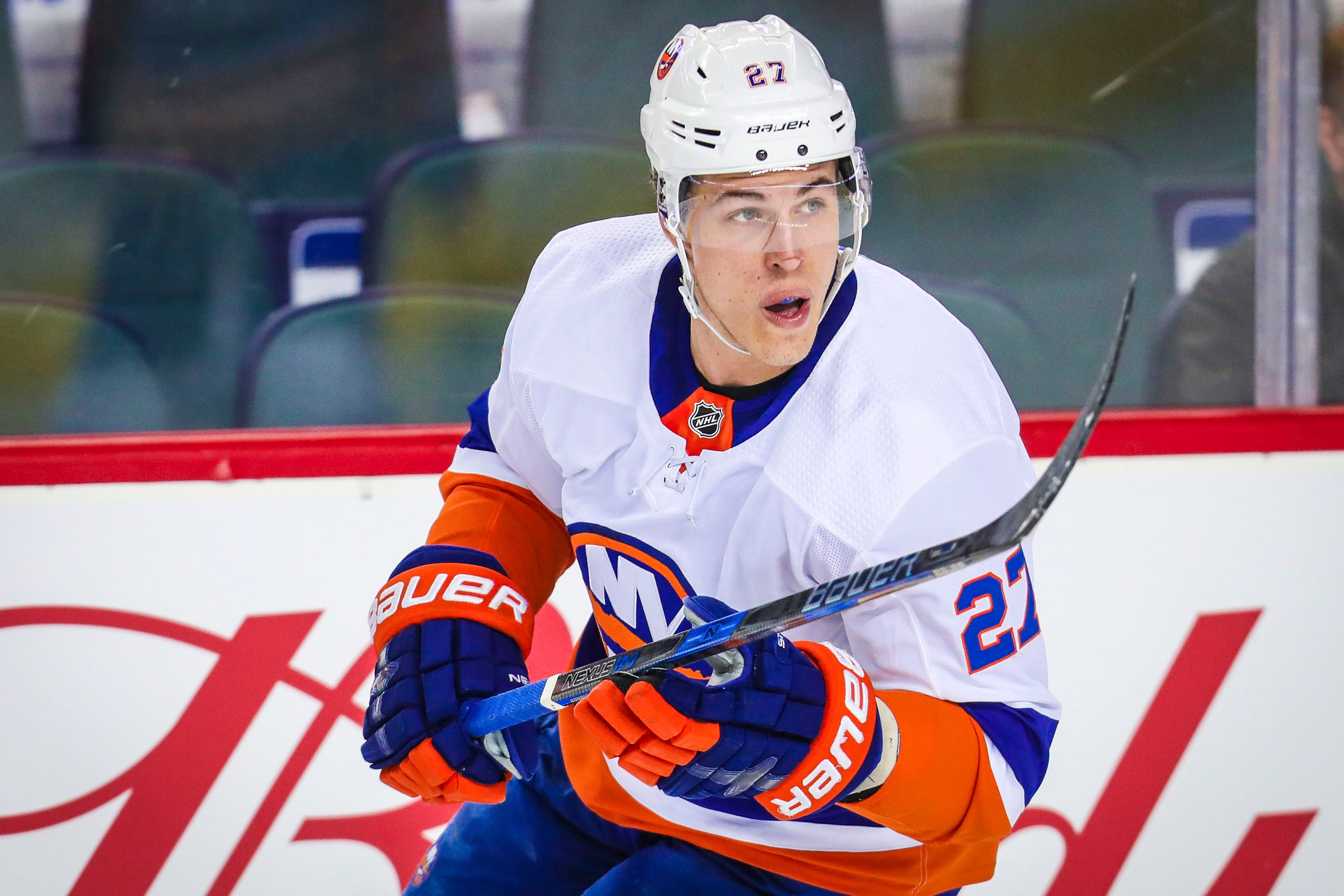 Mar 11, 2018; Calgary, Alberta, CAN; New York Islanders left wing Anders Lee (27) skates during the warmup period against the Calgary Flames at Scotiabank Saddledome. Mandatory Credit: Sergei Belski-USA TODAY Sports / Sergei Belski