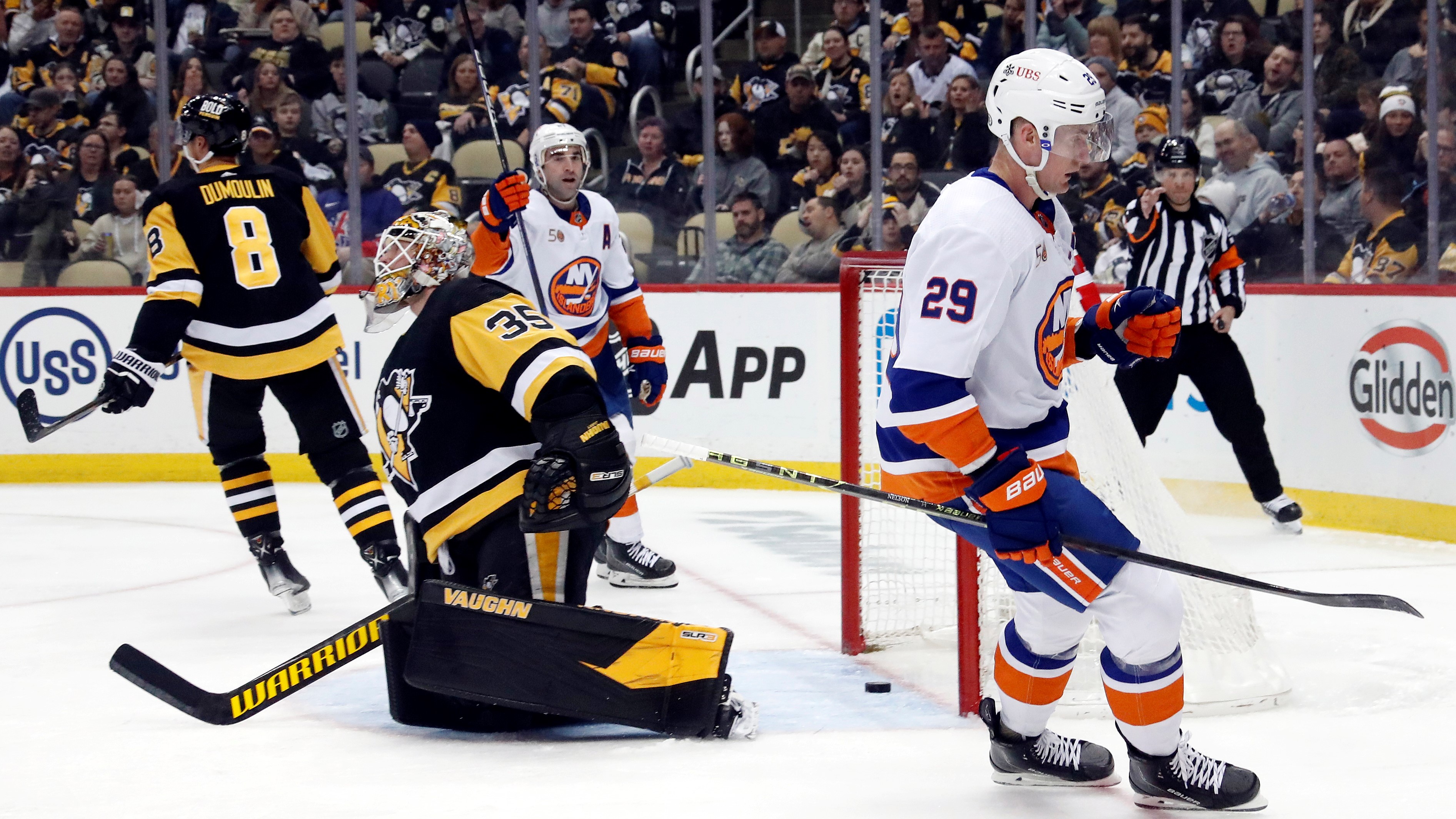 Islanders rally in third to stun Penguins, 4-2Brock Nelson led New York with two goals2/21/2023, 3:07 AMFeb 20, 2023; Pittsburgh, Pennsylvania, USA; New York Islanders center Brock Nelson (29) reacts after scoring a goal against Pittsburgh Penguins goaltender Tristan Jarry (35) during the second period at PPG Paints Arena. Mandatory Credit: Charles LeClaire-USA TODAY Sports / © Charles LeClaire-USA TODAY Sports