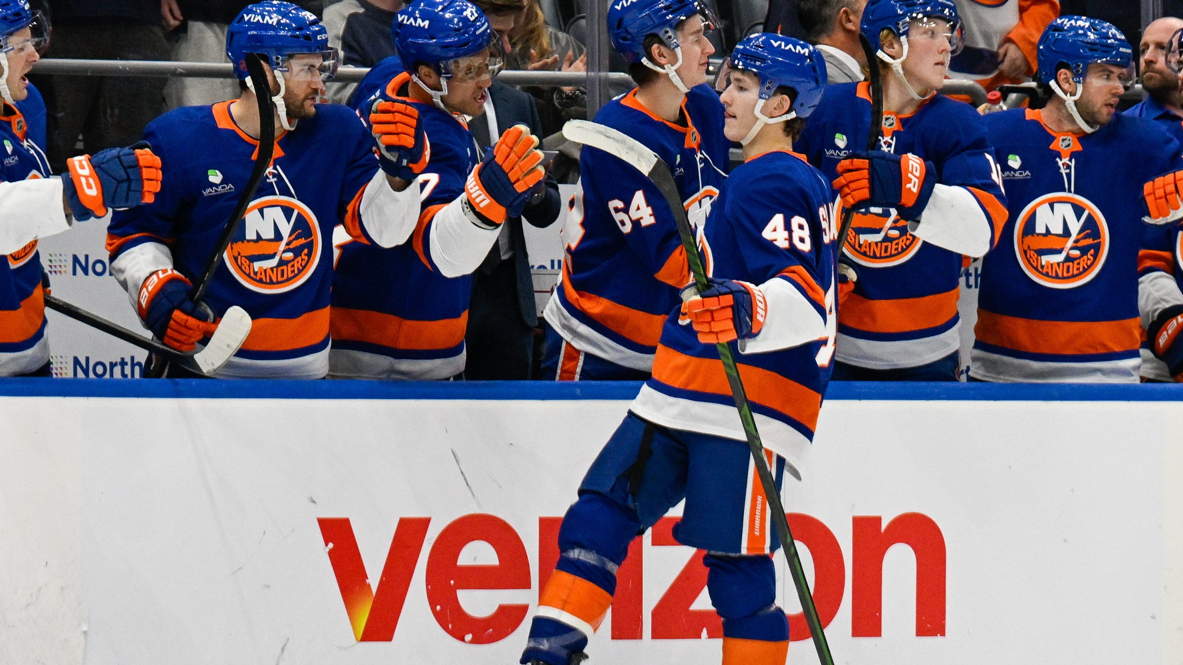 Islanders’ Matthew Schaefer continues historic rookie campaignThe youngster scored his eighth goal of the season Friday11/29/2025, 3:14 AMJohn FlaniganFreelance Editorial ProducerNew York Islanders defenseman Matthew Schaefer (48) celebrates his goal against the Philadelphia Flyers during the second period at UBS Arena / Dennis Schneidler - Imagn Images