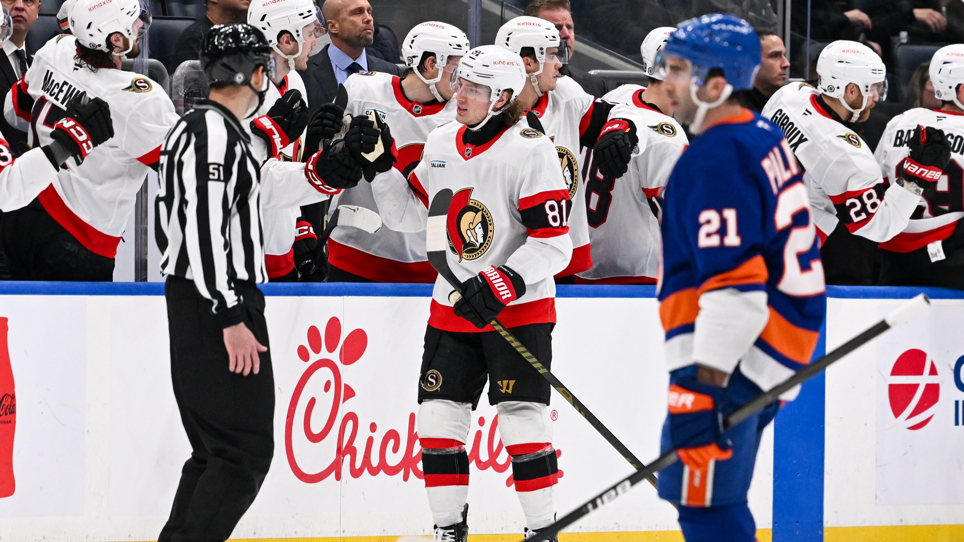 Islanders' win streak ends at three with 2-0 loss to SenatorsNew York remains in last place in Metropolitan standings1/15/2025, 3:38 AMAssociated PressJan 14, 2025; Elmont, New York, USA; Ottawa Senators right wing Adam Gaudette (81) celebrates his goal against the New York Islanders during the second period at UBS Arena / Dennis Schneidler-Imagn Images