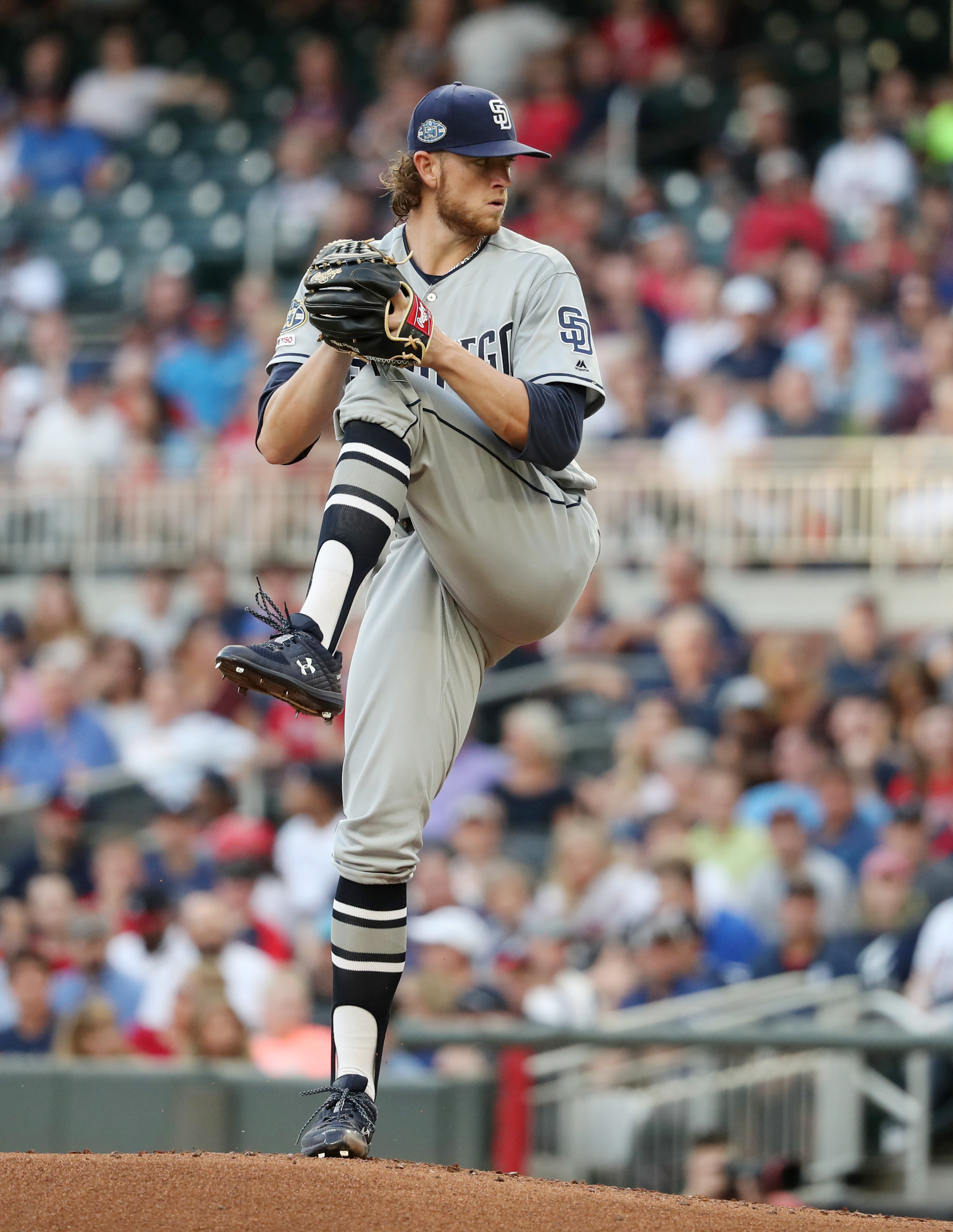 San Diego Padres starting pitcher Chris Paddack delivers a pitch to an Atlanta Braves batter during the first inning at SunTrust Park. / Jason Getz/USA TODAY Sports