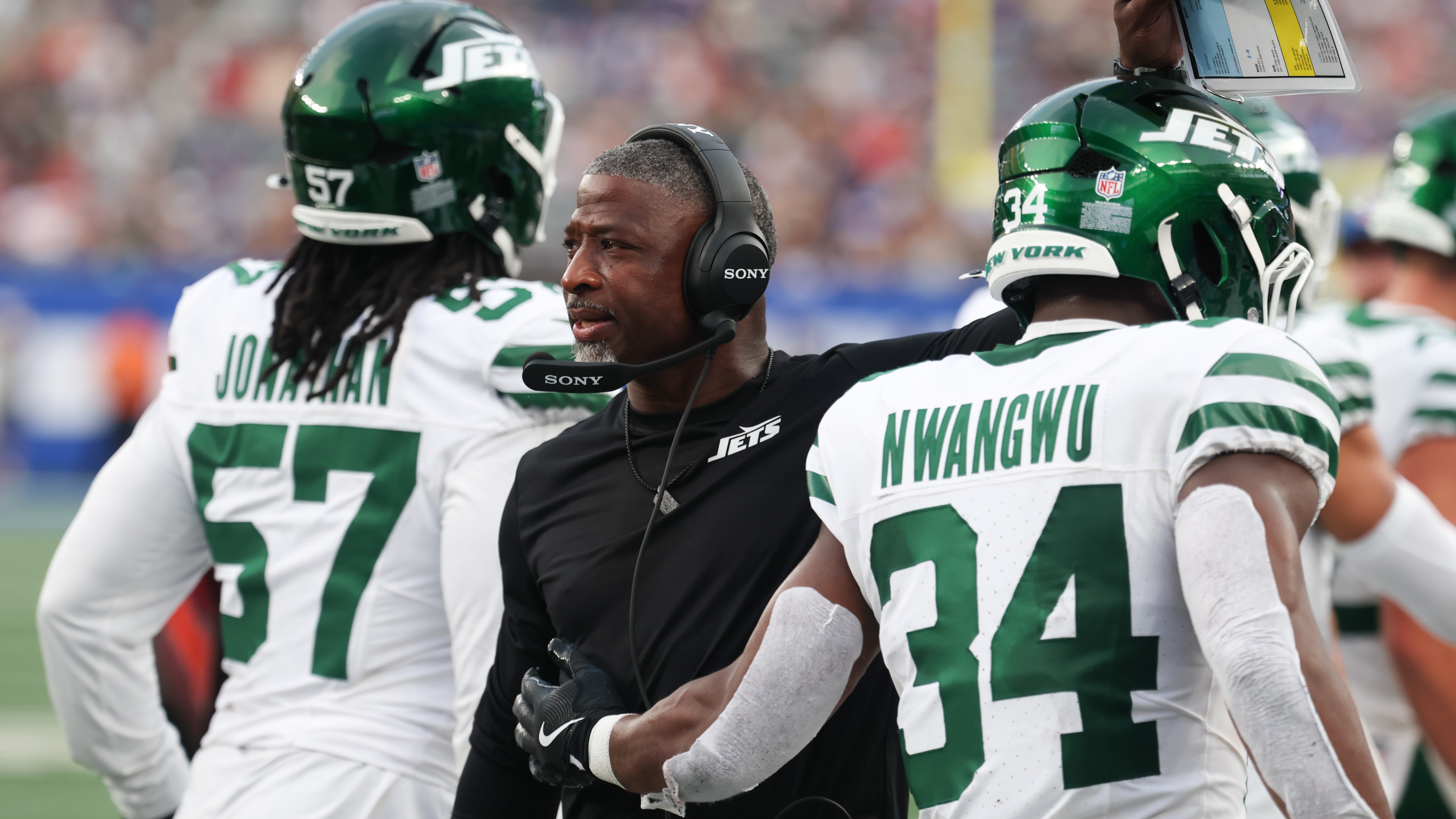 Jets 2025 game-by-game predictionsHow will Gang Green finish?9/2/2025, 2:00 PMConnor HughesNFL InsiderAug 16, 2025; East Rutherford, New Jersey, USA; New York Jets head coach Aaron Glenn with running back Kene Nwangwu (34) during the first quarter against the New York Giants at MetLife Stadium. Mandatory Credit: Vincent Carchietta-Imagn Images / © Vincent Carchietta-Imagn Images