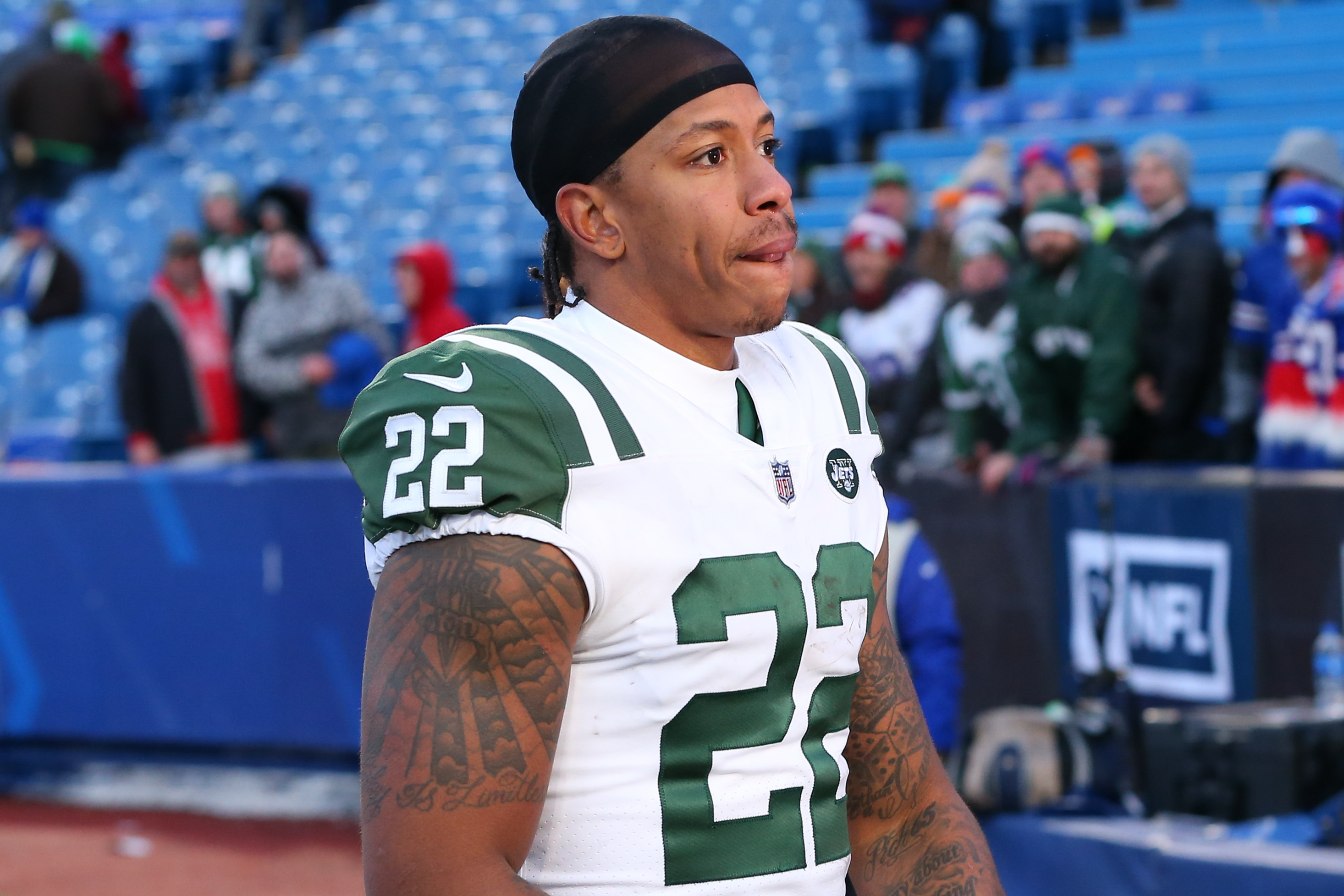 Dec 9, 2018; Orchard Park, NY, USA; New York Jets cornerback Trumaine Johnson (22) walks off the field following the game against the Buffalo Bills at New Era Field. Mandatory Credit: Rich Barnes-USA TODAY Sports / Rich Barnes
