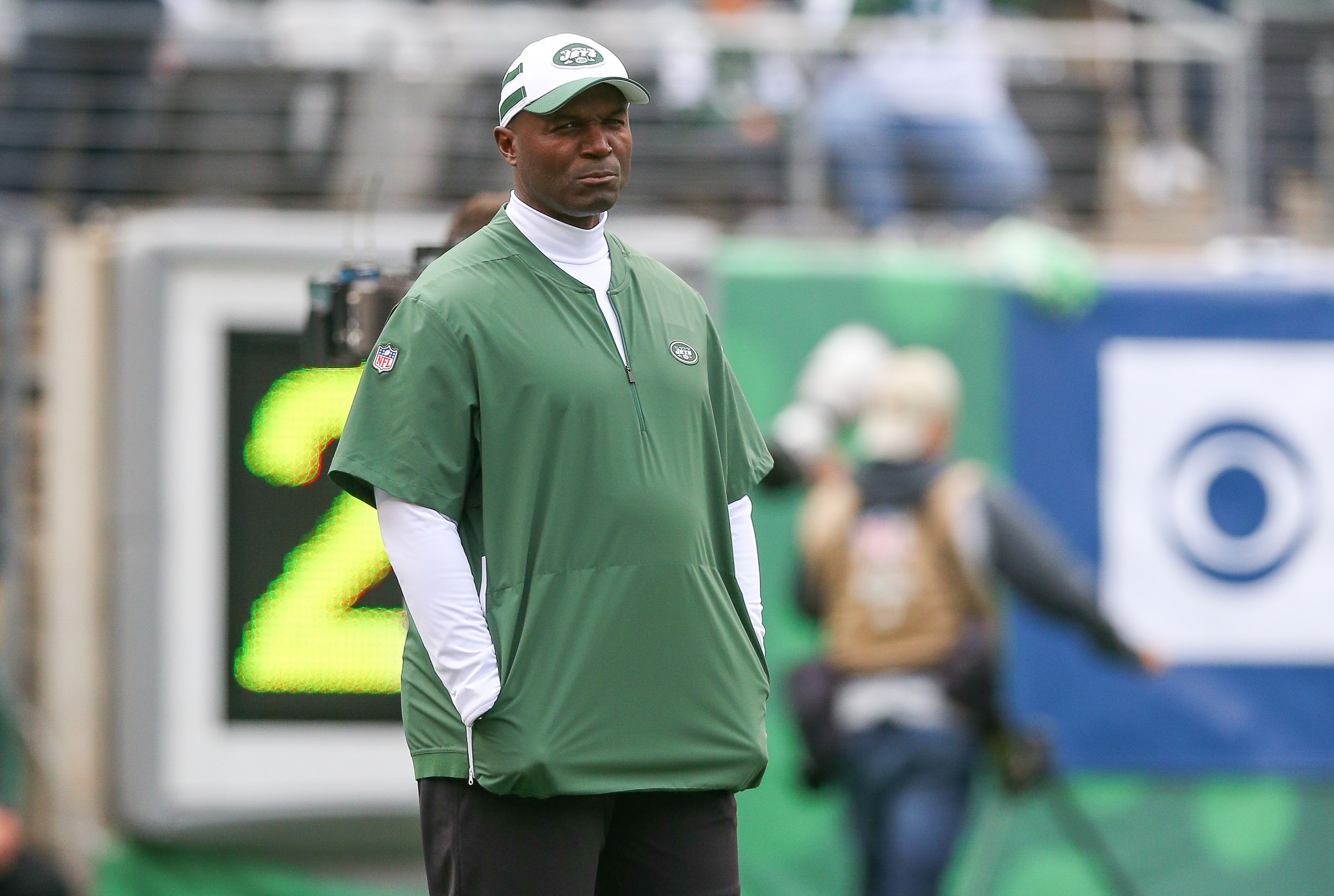 Oct 14, 2018; East Rutherford, NJ, USA; New York Jets head coach Todd Bowles looks on before his game against the Indianapolis Colts during the second half at MetLife Stadium. Mandatory Credit: Vincent Carchietta-USA TODAY Sports / Vincent Carchietta