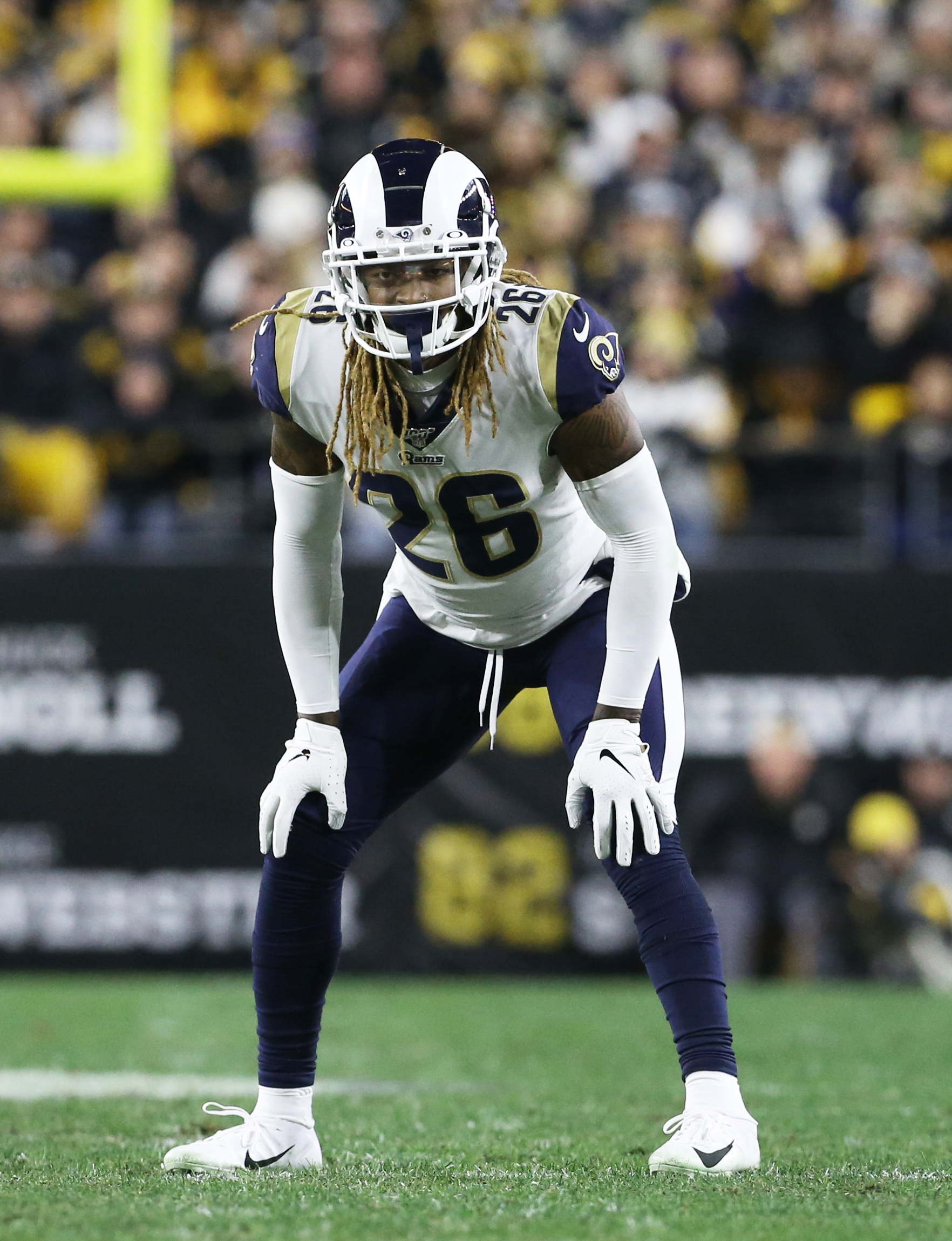 Nov 10, 2019; Pittsburgh, PA, USA; Los Angeles Rams defensive back Marqui Christian (26) defends against the Pittsburgh Steelers during the third quarter at Heinz Field. Pittsburgh won 17-12. Mandatory Credit: Charles LeClaire-USA TODAY Sports / Charles LeClaire