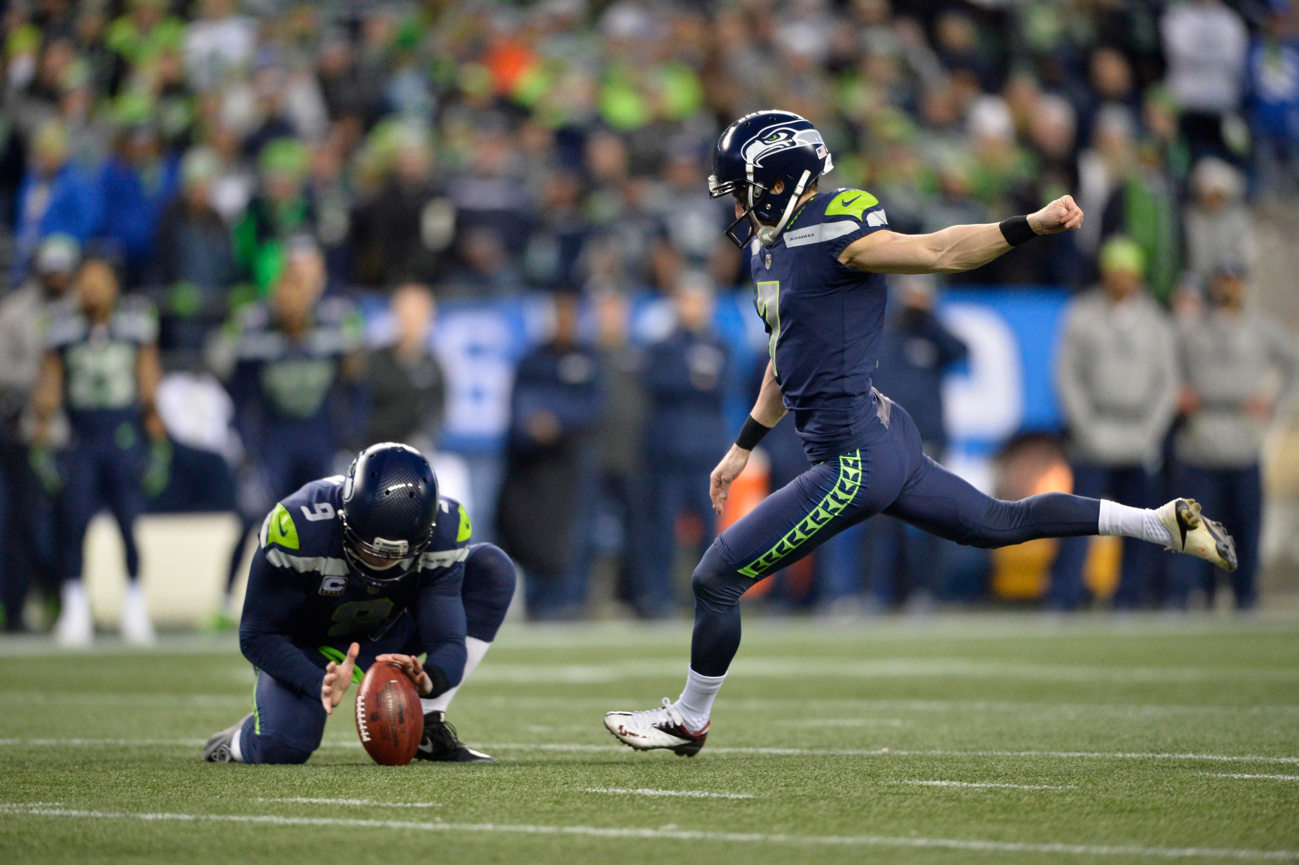 Dec 31, 2017; Seattle, WA, USA; Seattle Seahawks kicker Blair Walsh (7) misses a field in the last two minutes of the second half against the Arizona Cardinals at CenturyLink Field. Arizona defeated Seattle 26-24. Mandatory Credit: Steven Bisig-USA TODAY Sports / Steven Bisig