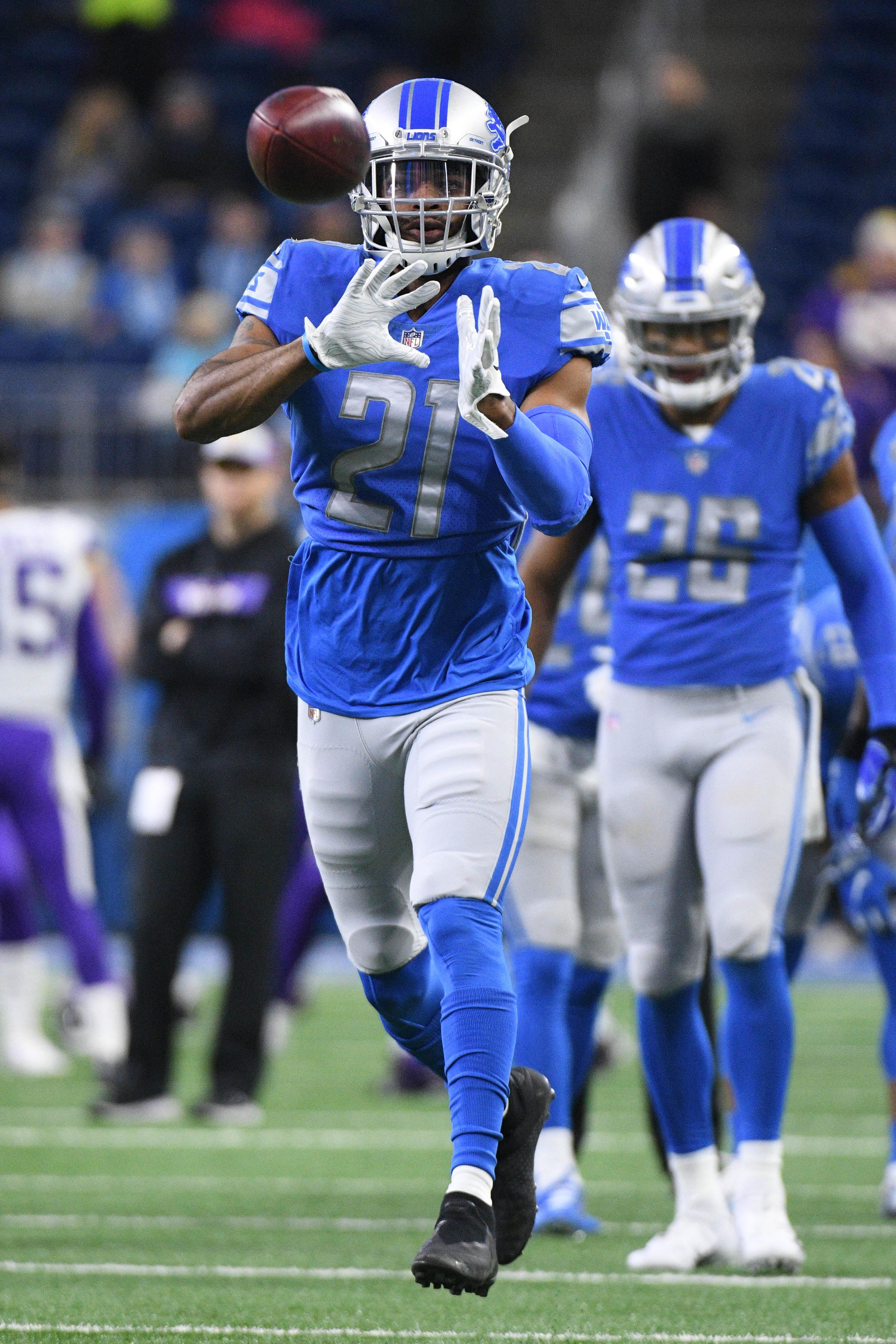 Dec 23, 2018; Detroit, MI, USA; Detroit Lions defensive back Marcus Cooper (21) warms up before the game against the Minnesota Vikings at Ford Field. Mandatory Credit: Tim Fuller-USA TODAY Sports / Tim Fuller