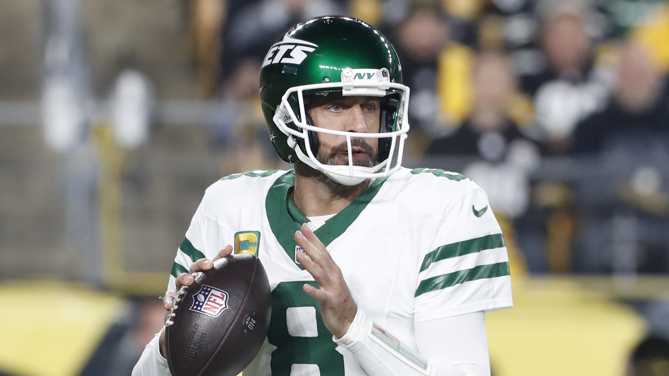 Aaron Rodgers throws two picks as Jets fall to Steelers, 37-15Pittsburgh spoils Davante Adams’ Jets debut10/21/2024, 3:48 AMLucas HutchersonNFL freelance writer