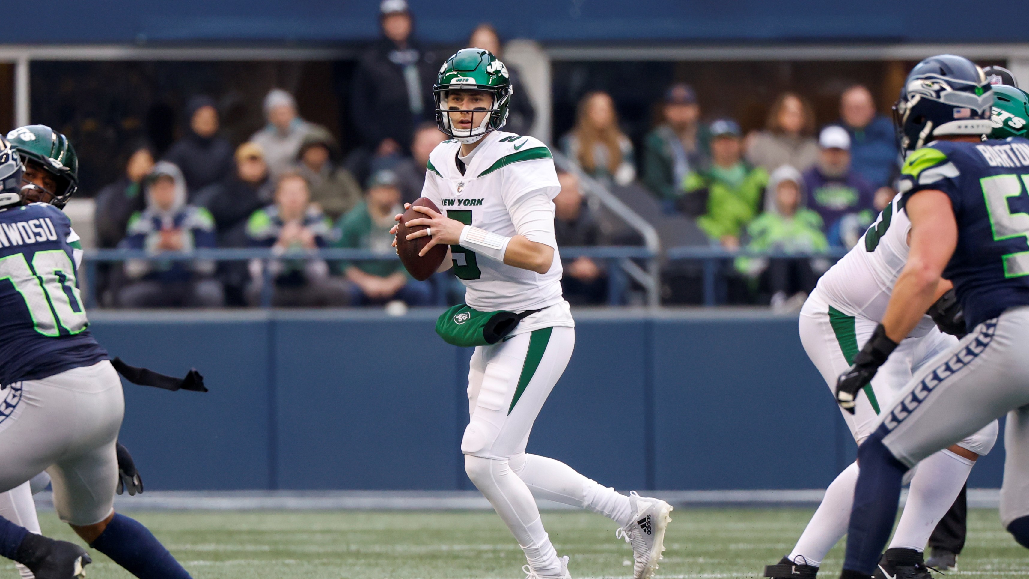 Jets takeaways from Sunday's 23-6 loss to Seahawks, including Mike White's struggles as Gang Green misses playoffsIn a must-win situation, the Jets came out flat1/2/2023, 12:53 AMLucas HutchersonNFL freelance writerJan 1, 2023; Seattle, Washington, USA; Seattle Seahawks quarterback Geno Smith (7) celebrates after showing a touchdown pass against the New York Jets during the second quarter at Lumen Field. Mandatory Credit: Joe Nicholson-USA TODAY Sports / © Joe Nicholson-USA TODAY SportsJan 1, 2023; Seattle, Washington, USA; New York Jets place kicker Greg Zuerlein (6) makes a field goal against the Seattle Seahawks during the second quarter at Lumen Field. Mandatory Credit: Joe Nicholson-USA TODAY Sports / © Joe Nicholson-USA TODAY Sports