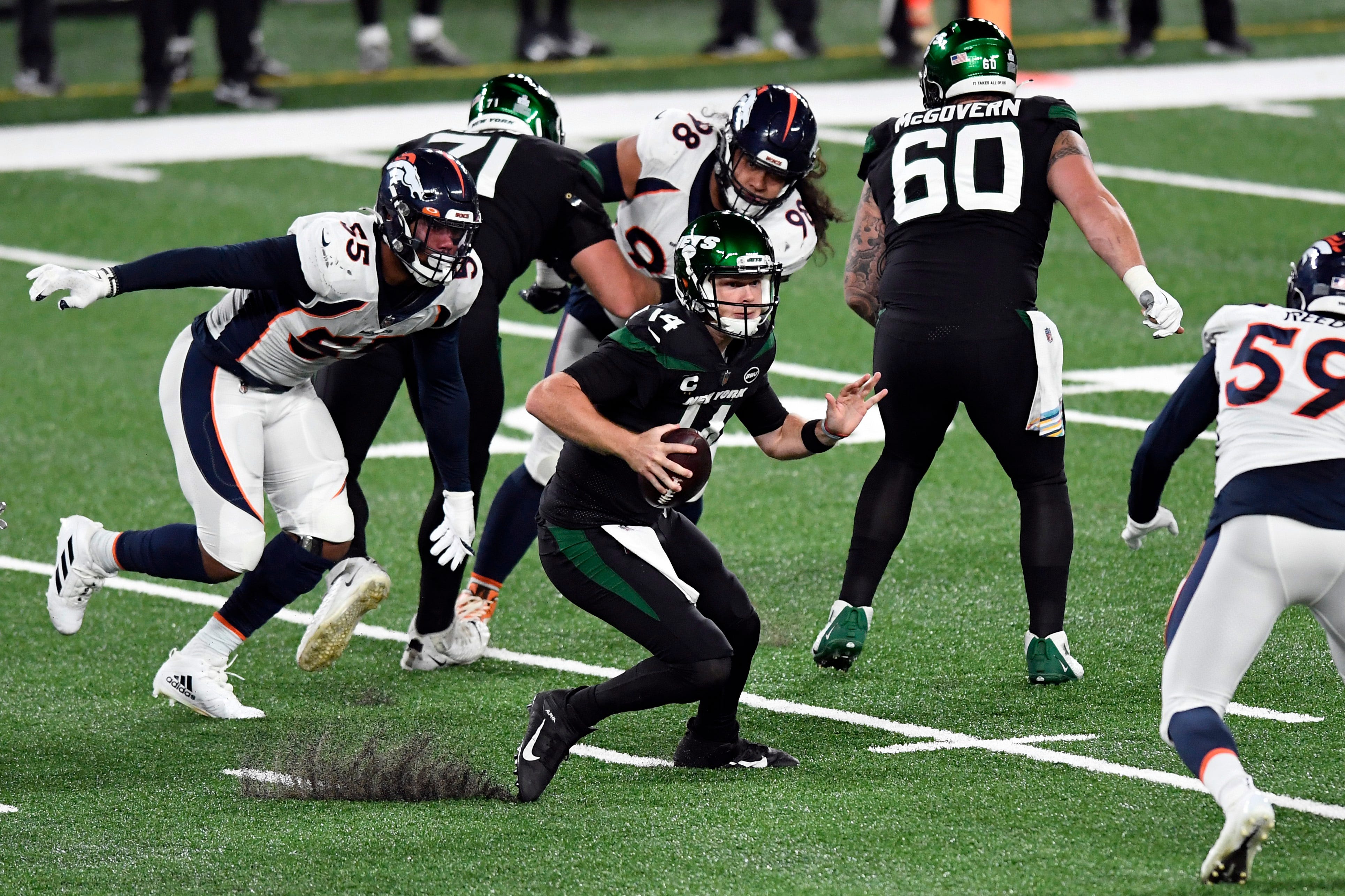 Jets Takeaways from Thursday's 37-28 loss to Broncos, including Sam Darnold seemingly avoiding injury and sloppy penaltiesJets drop to 0-4 with the Thursday's loss10/2/2020, 3:55 AMRalph VacchianoNFL InsiderNew York Jets quarterback Sam Darnold (14) scrambles against the Denver Broncos in the first half of a NFL game at MetLife Stadium on Thursday, Oct. 1, 2020, in East Rutherford. / Danielle Parhizkaran/NorthJersey.com-Imagn Content Services, LLC