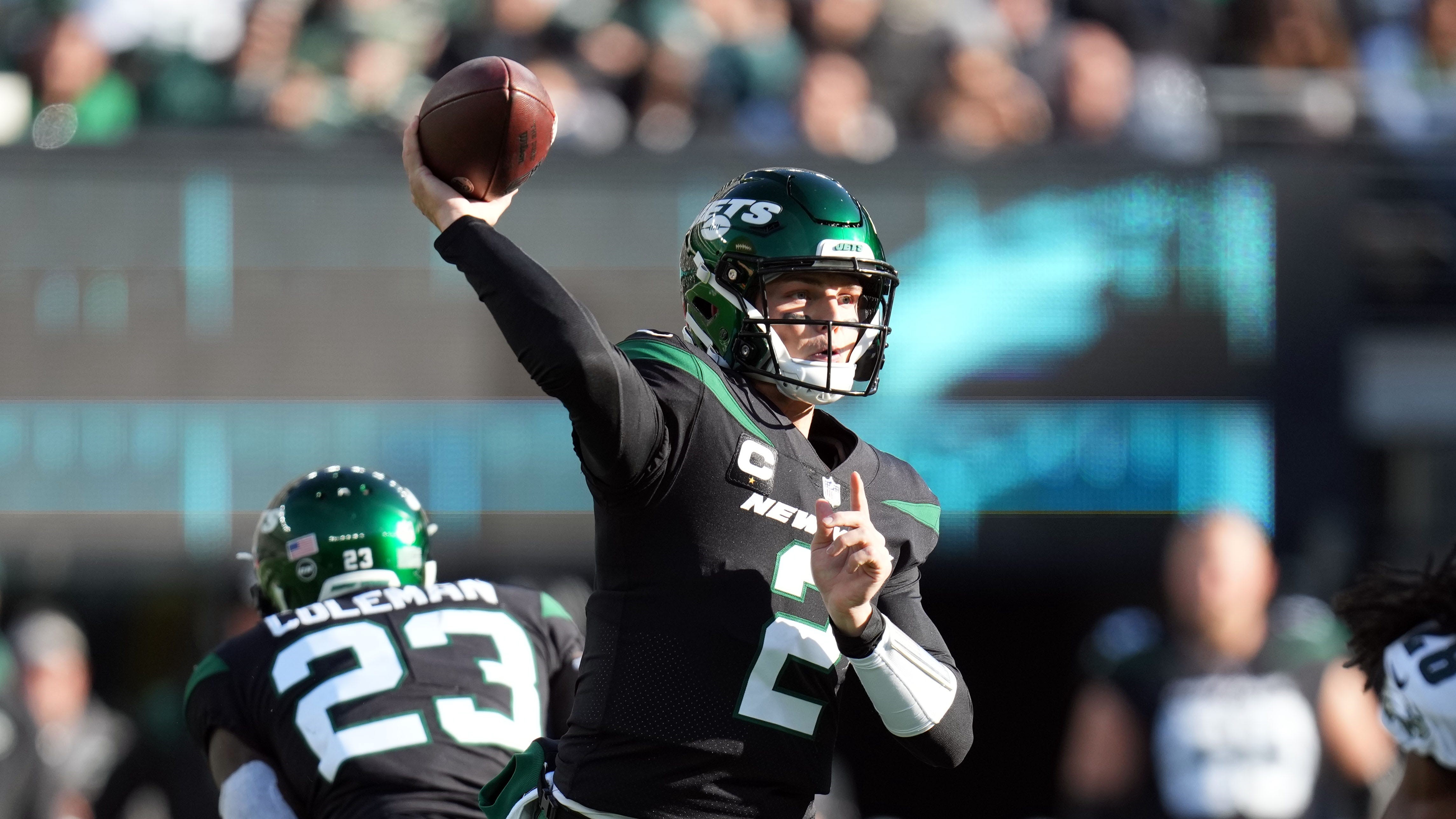 Jets takeaways from 33-18 loss to Eagles, including fast Zach Wilson startAfter building an 18-14 lead early, the Jets gave up 19 straight points12/5/2021, 9:53 PMLucas HutchersonNFL freelance writerNew York Jets quarterback Zach Wilson (2) throws the ball in the first half at MetLife Stadium on Sunday, Dec. 5, 2021 / Danielle Parhizkaran/NorthJersey.com-Imagn Content Services, LLC