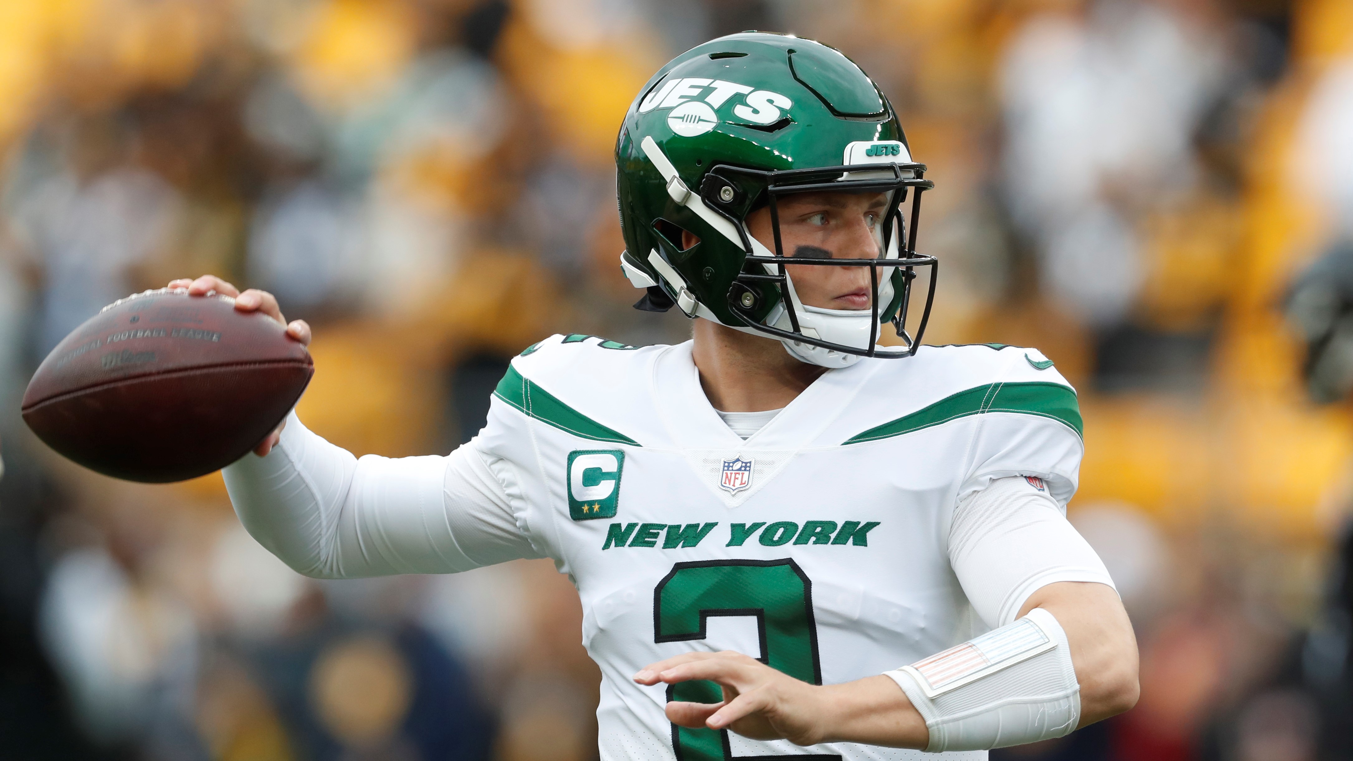 Zach Wilson finally looks like Jets' answer at QBSecond-year QB led New York to fourth-quarter comeback win10/3/2022, 12:19 AMConnor HughesNFL InsiderOct 2, 2022; Pittsburgh, Pennsylvania, USA; New York Jets quarterback Zach Wilson (2) looks to pass against the Pittsburgh Steelers during the first quarter at Acrisure Stadium. Mandatory Credit: Charles LeClaire-USA TODAY Sports / © Charles LeClaire-USA TODAY SportsOct 2, 2022; Pittsburgh, Pennsylvania, USA; New York Jets quarterback Zach Wilson (2) catches a touchdown pass on a trick play as Pittsburgh Steelers safety Minkah Fitzpatrick (39) looks on during the second quarter at Acrisure Stadium. The Jets won 24-20. Mandatory Credit: Charles LeClaire-USA TODAY Sports / © Charles LeClaire-USA TODAY SportsOct 2, 2022; Pittsburgh, Pennsylvania, USA; New York Jets head coach Robert Saleh (left) and quarterback Zach Wilson (2) react leaving the field after defeating the Pittsburgh Steelers at Acrisure Stadium. The Jets won 24-20. Mandatory Credit: Charles LeClaire-USA TODAY Sports / © Charles LeClaire-USA TODAY Sports