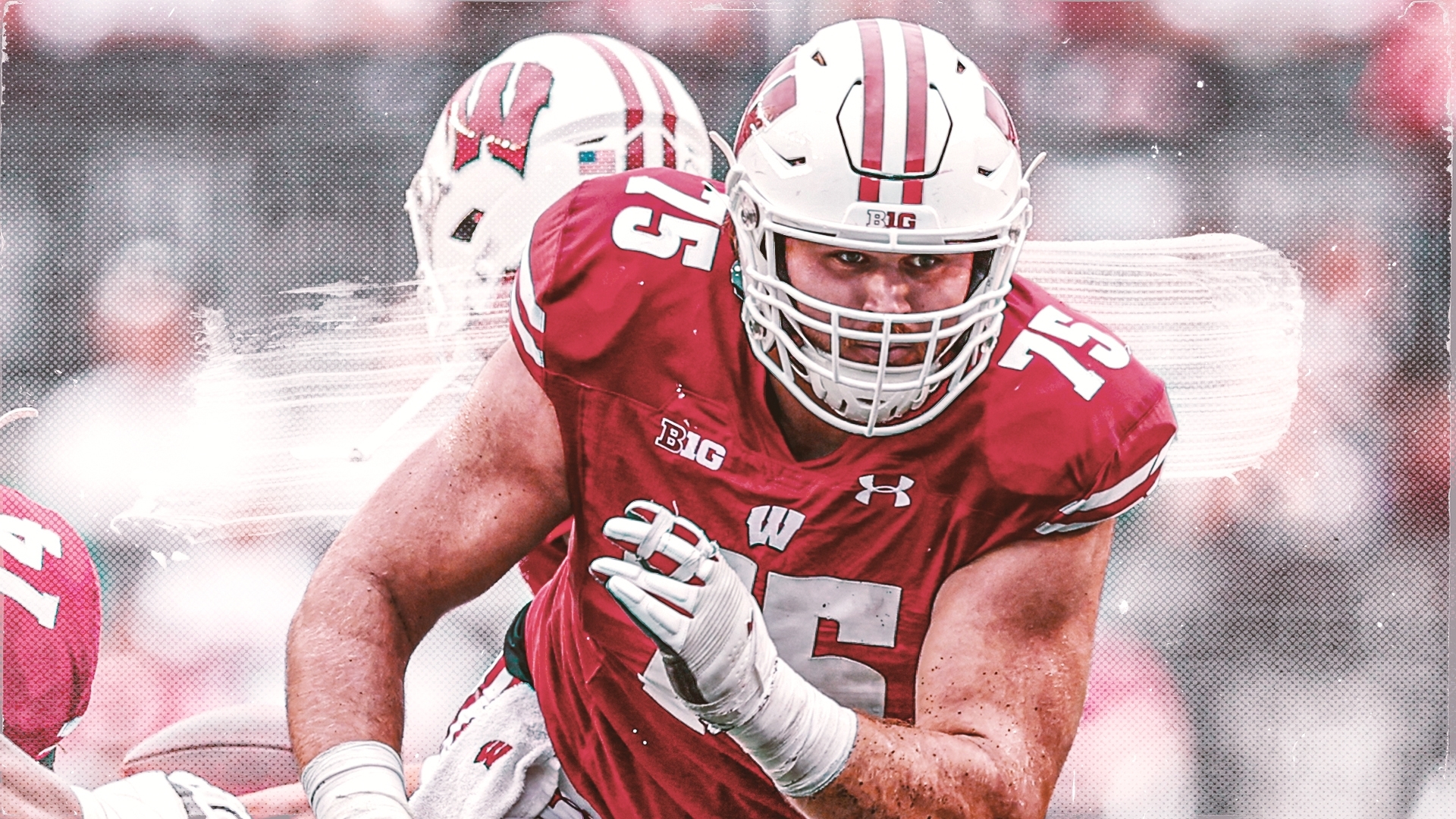 Wisconsin offensive lineman Joe Tippmann (75) looks for someone to block during the first quarter of their game against Eastern Michigan Saturday, September 11, 2021 at Camp Randall Stadium in Madison, Wis. / MARK HOFFMAN/MILWAUKEE JOURNAL SENTINEL via Imagn Content Services, LLC