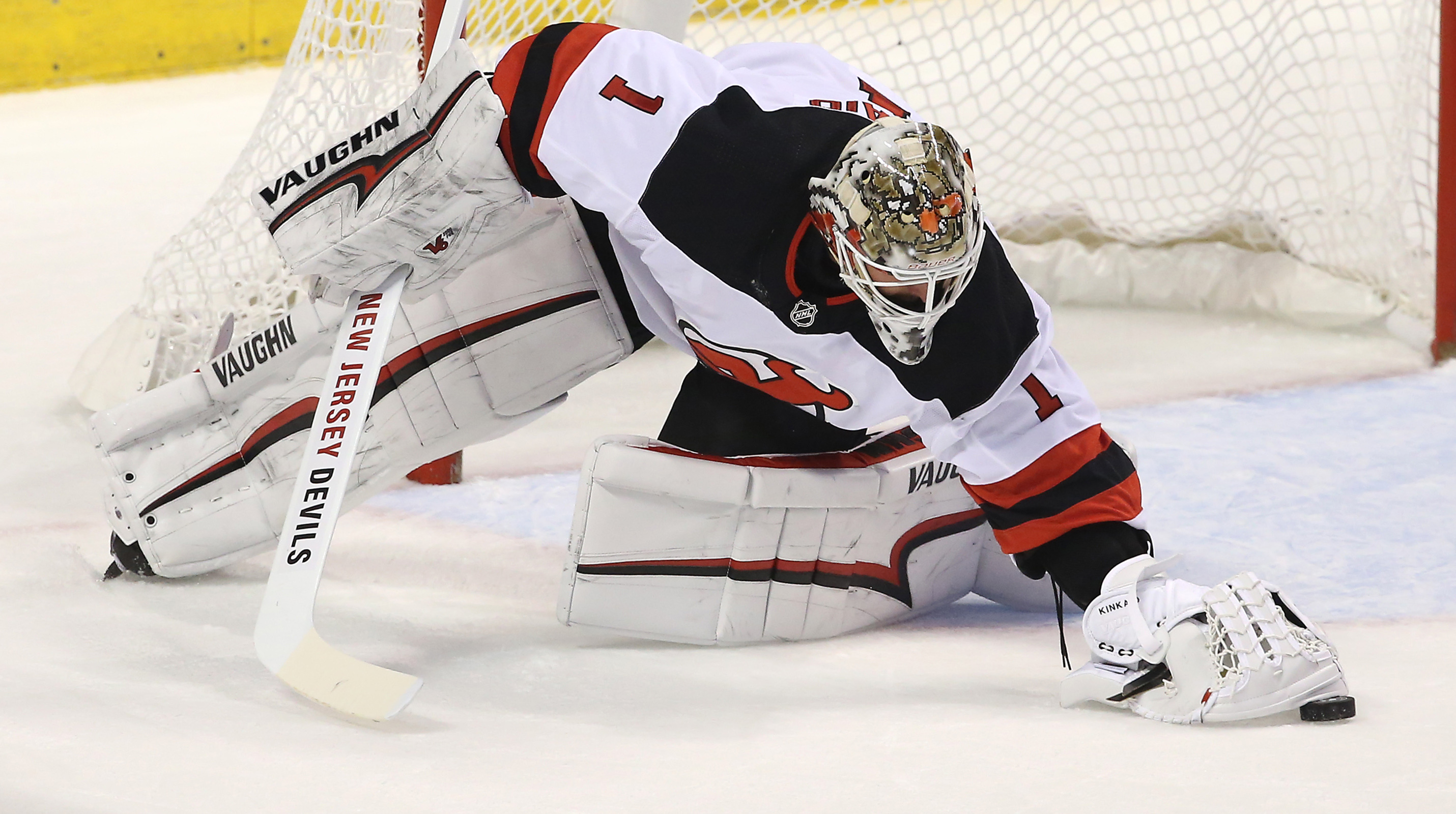 New Jersey Devils goaltender Keith Kinkaid makes a save in the first period of a game against the Florida Panthers at BB&T Center. / Robert Mayer/USA TODAY Sporta